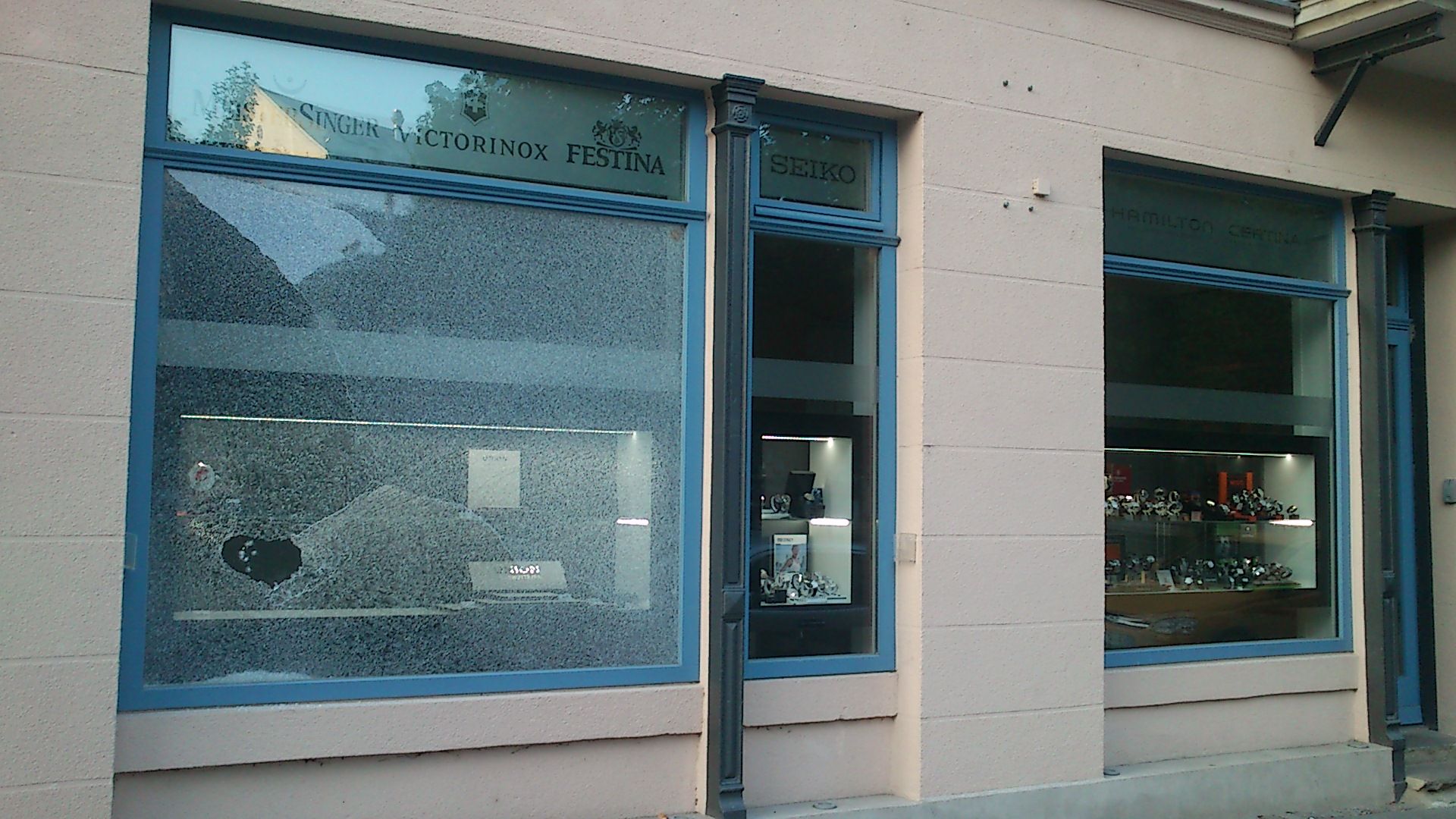 Gemeint ist die Uhrenlounge auf der Bautzner Straße 6. Geschäftsführer Johannes S. Müller berichtet, dass keine Waren gestohlen werden konnte, weil das Sicherheitsglas standhielt. Hinter der Scheibe lagen Uhren der Marken Meistersinger, Union Glashütte und Oris aus. Müller: „Das ist wirklich erschreckend, dass jemand denkt, er kommt mit einem Hammer oder einer Axt durch das Glas eines Juweliergeschäfts.“ Nun muss die äußere Scheibe erneuert werden.