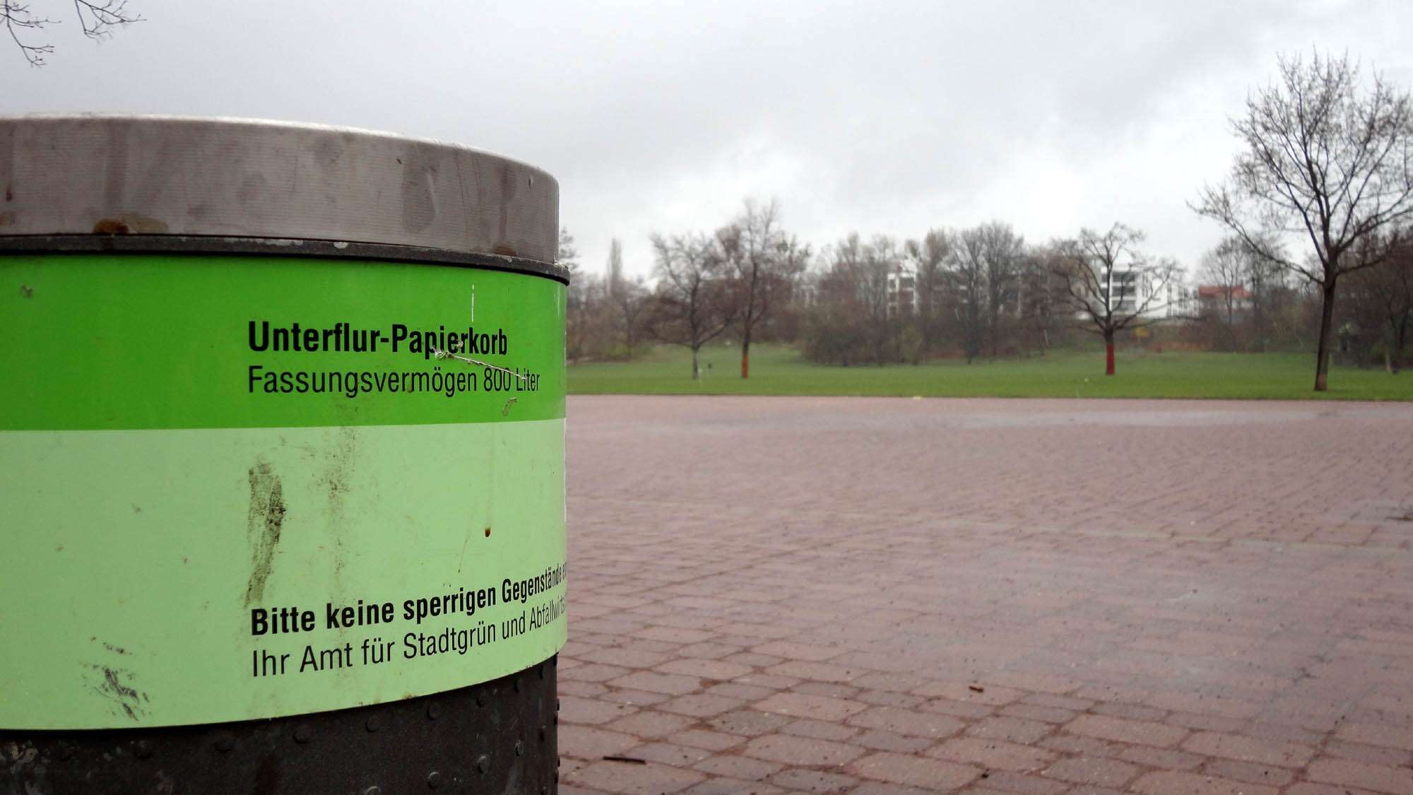 Die Unterflur-Mülleimer sind schlecht konzipiert. Vielleicht sind die groß genug, aber die Eingänge sind zu klein und zu oft verstopft. Immer wenn ich im Alaunpark bin, sind die Mülleimer voll. Klar gibt es Leute, die ihren Müll liegen lassen. Das ist nicht in Ordnung, aber ich glaube nicht, dass das gesamte Ordnungsproblem in der Neustadt daran liegt, dass die Leute ihren Müll in der Gegend rumschmeißen. Die Lösung könnten verbesserte Mülleimer und mehr Mülleimer sein.