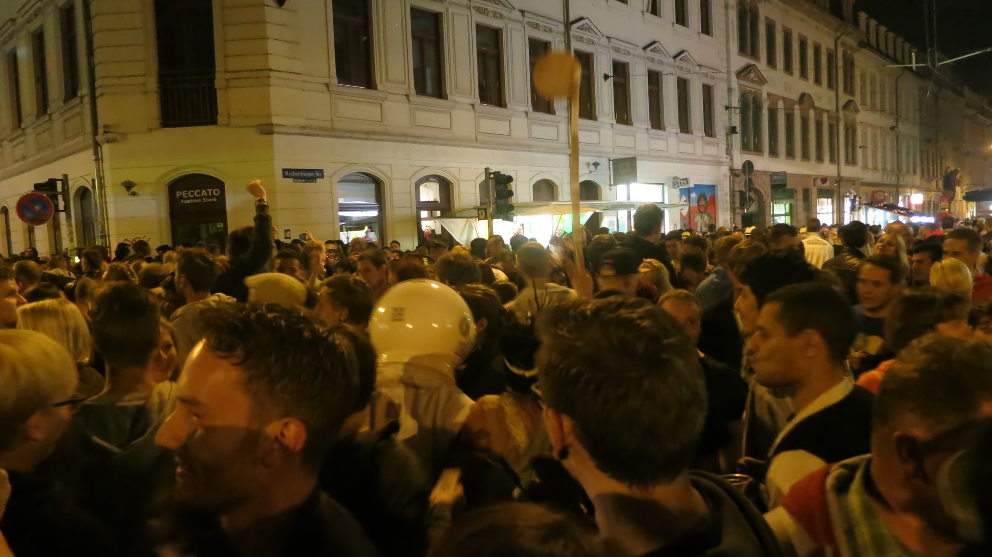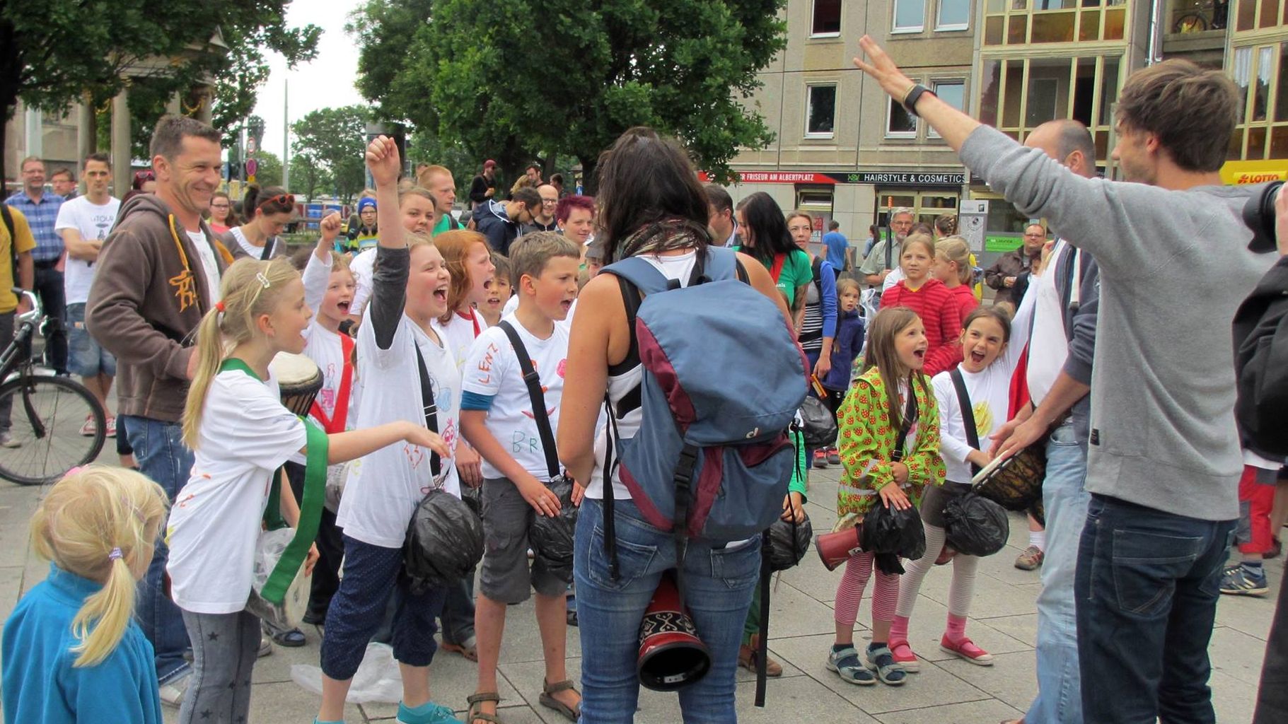 Und jetzt alle: „Yeah!“Pünktlich um 17 Uhr startete der Kinderumzug am Albertplatz. Die Kids zogen dem Mond entgegen. Zur gleichen Zeit zogen Ordnungsamt und Feuerwehr durch die engen Gassen des noch mäßig gefüllten Viertels. Hier und da musste ein bisschen zurück gebaut werden, aber die meisten Veranstalter haben inzwischen die Spielregeln verstanden.die Feuerwehrrundfahrt verlief ohne größere Probleme