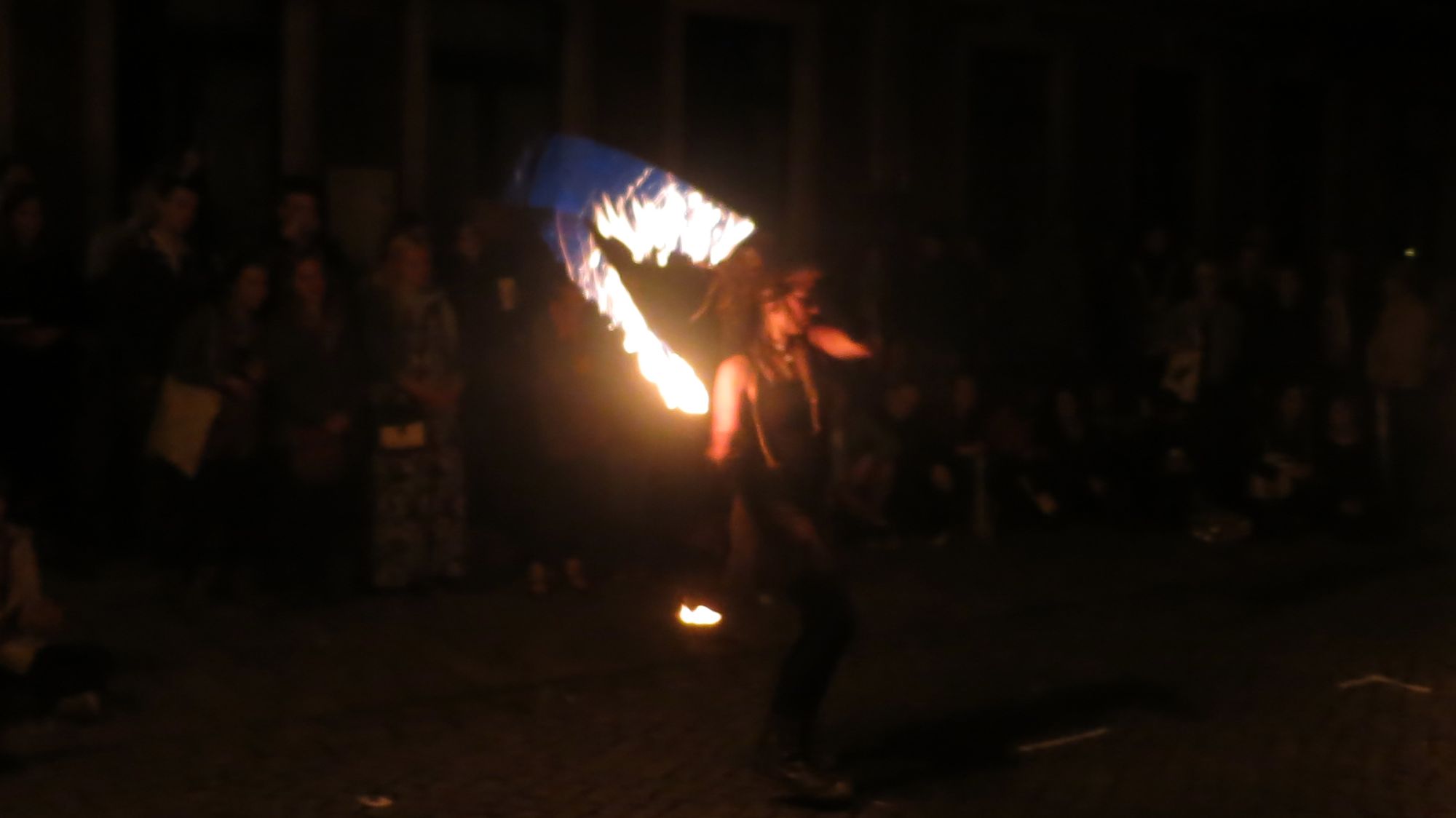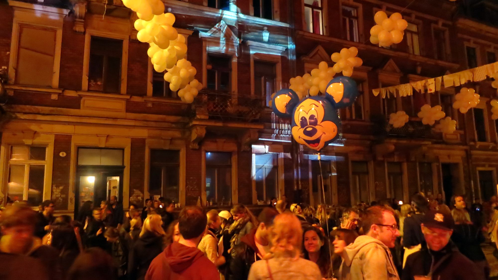 Dann läuft mir ein Freund über den Weg und zieht mich weg aus dem bösen Westen. Vorm Laika steigt die Stimmung schon etwas. Der Harndrang macht sich bemerkbar. Beste Gelegenheit den Toilettenwagen auf der Talstraße zu testen. Ein Horst in der Damenwarteschlange. Die Mundwinkel erreichen wieder die Horizontale. Ein Pirat gibt den DJ, Oma und Opa der BRN strahlen und stecken mich an. Der BRN-Ball ist in vollem Gange. Nebendran springt eine Artistin durch ein brennendes Springseil. Ich kuschle mich in die Nacht und lasse mich überreden, noch mal schnell zum Martin-Luther-Platz zu stromern. Vor der Kirche, die sich altehrwürdig in den Abend streckt, spielen die Transsylvanians. Gut, dass der Selbstheilungsprozess der BRN jedes Jahr wieder funktioniert.