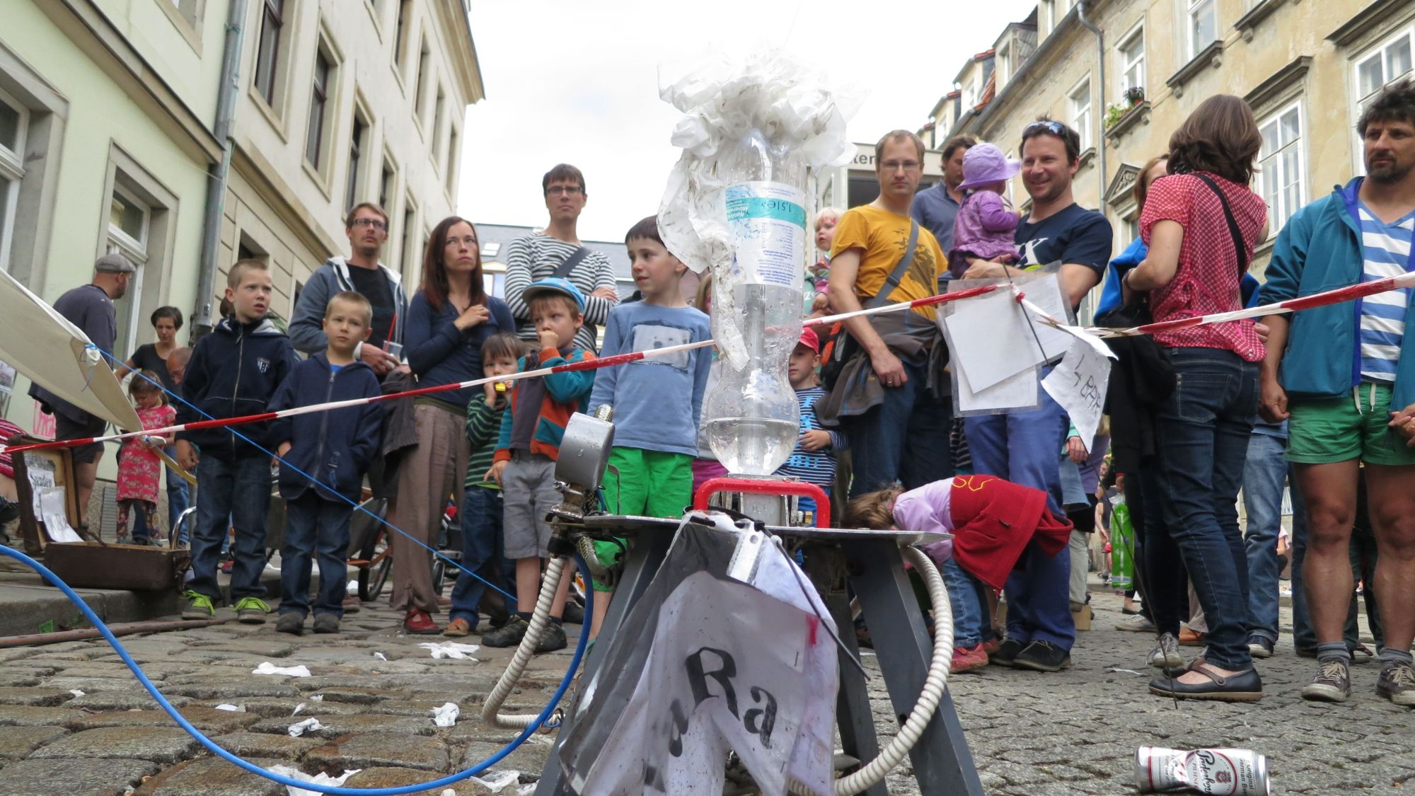 meint E-Haller. Wieso muß es denn jedes Jahr neuer, größer, schneller sein? Das Angebot wird von den (neuen und „alten“) Kindern doch mit Freude angenomen. Nur das es auch für solche einfachen Freuden kaum noch Raum gibt. Übrigens ist ja grad auf der Talstraße mit dem statement vom Kinderzirkus (der seine Abwesenheit begründete) einiges gesagt: zu groß, zu viel, zu voll, zu laut, zu stressig. Die „schönen Sachen“ bleiben weg, weil die „doofen“ Überhand nehmen, was der Theorie, man könne letztere verdrängen durch mehr von ersterem, zumindest in Frage stellt. Es scheint nicht so zu sein, dass „doofe“ Angebote Lücken füllen, die die „netten“ gelassen haben, sondern eher die Lücken gerissen haben, durch Verdrängen der „netten“ …