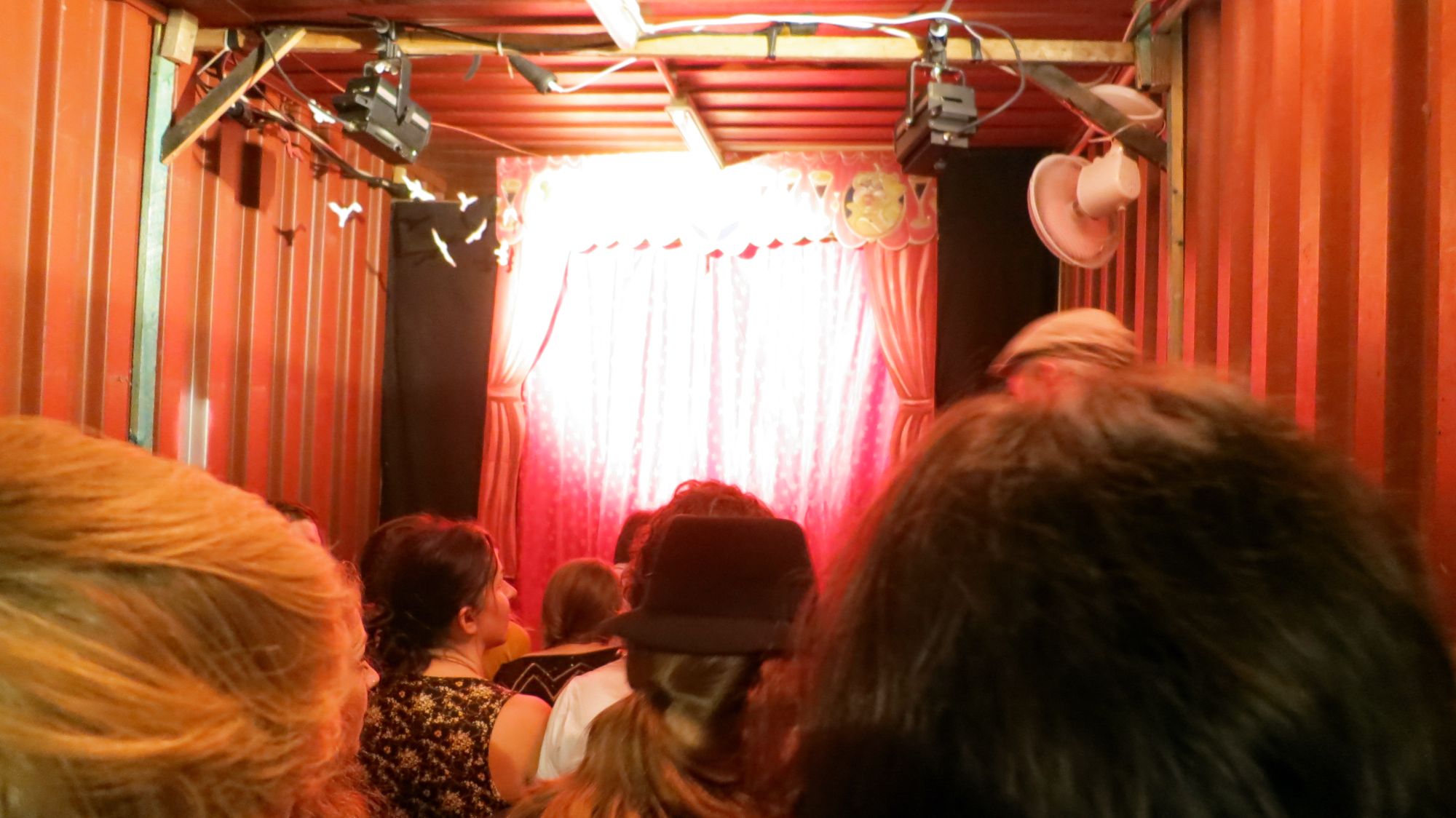 Dann geht’s ran an die Kultur. Gegeben wird „Die unglaubliche Geschichte der Stadt Valparaiso, Chiles Hafenstadt, die aus der Asche jeder Katastrophe ihre vielfarbige Wiederaufblühung erlebt.“ Im Container eng drängt sich das Publikum. Auf der Bühne Pappfiguren in Pappkulissen, dazu chilenische Musik. Muriel und Cesar gelingt es die bewegte Geschichte dieser Stadt ohne weitere Worte zu erzählen, spannend, bis zum Schluss der Beifall tobt. Die Show ist noch bis zum Ende der Buden zu sehen, im roten Container mitten auf dem Hauptplatz.