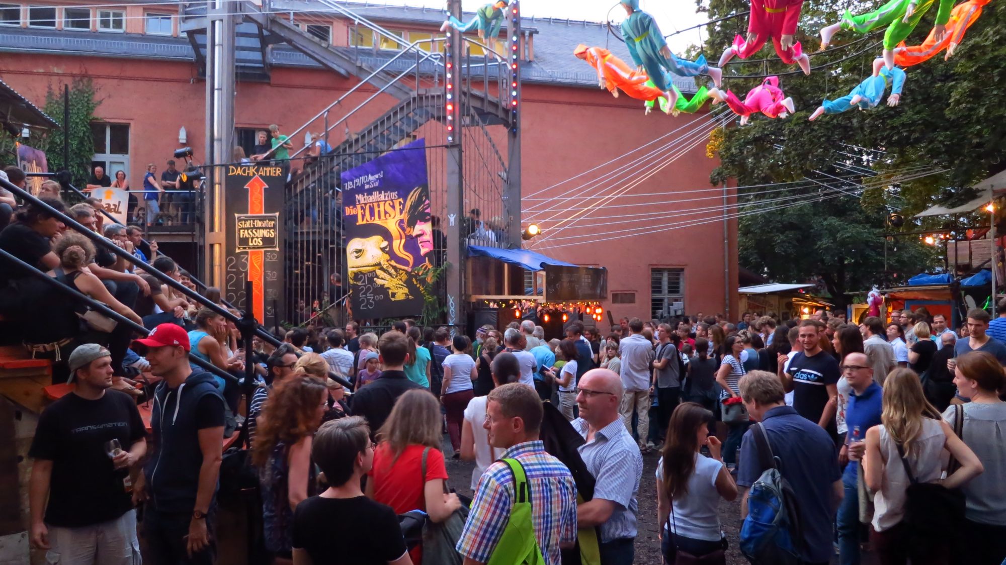 Die Echsenschlange führte über den halben Platz und die ganze Treppe.Stattdessen widme ich mich lieber den geistigen Getränken und Beobachtungen. Die Kapelle Romantika spielt auf und mit Staunen und Bewunderung verfolge ich die unglaubliche Harmonie der vier Gitarristen rund um den weiß gewandeten Akkordeon-Spieler. Dieses Zieh-und-Drück-Instrument scheint ohnehin die Buden zu beherrschen, auch am Karussel gibt es die Tonlage an. Doch zurück zu den Beobachtungen. Der Schaubudensommer ist immer auch für die private Schau gut. Es scheint als ob hier alle Neustädter Singles ihr Outfit zu Markte tragen. Herren betonen ihre Bauchmuskeln, glänzen mit gewaschenen Haaren und plaudern charmant. Die Damen kombinieren gern blitzende Unterwäsche mit knappen Trägertops und lächeln Fremden galant zu. Verlegen wende ich mich ab und widme mich lieber wieder den romantischen Klängen rund um die Quetschkommode. Und bin jetzt janz schön aleene ohne Jolene.Großes Gedränge gibt es immer kurz vor 8 Uhr, danach kostet der Platzbesuch Eintritt.
