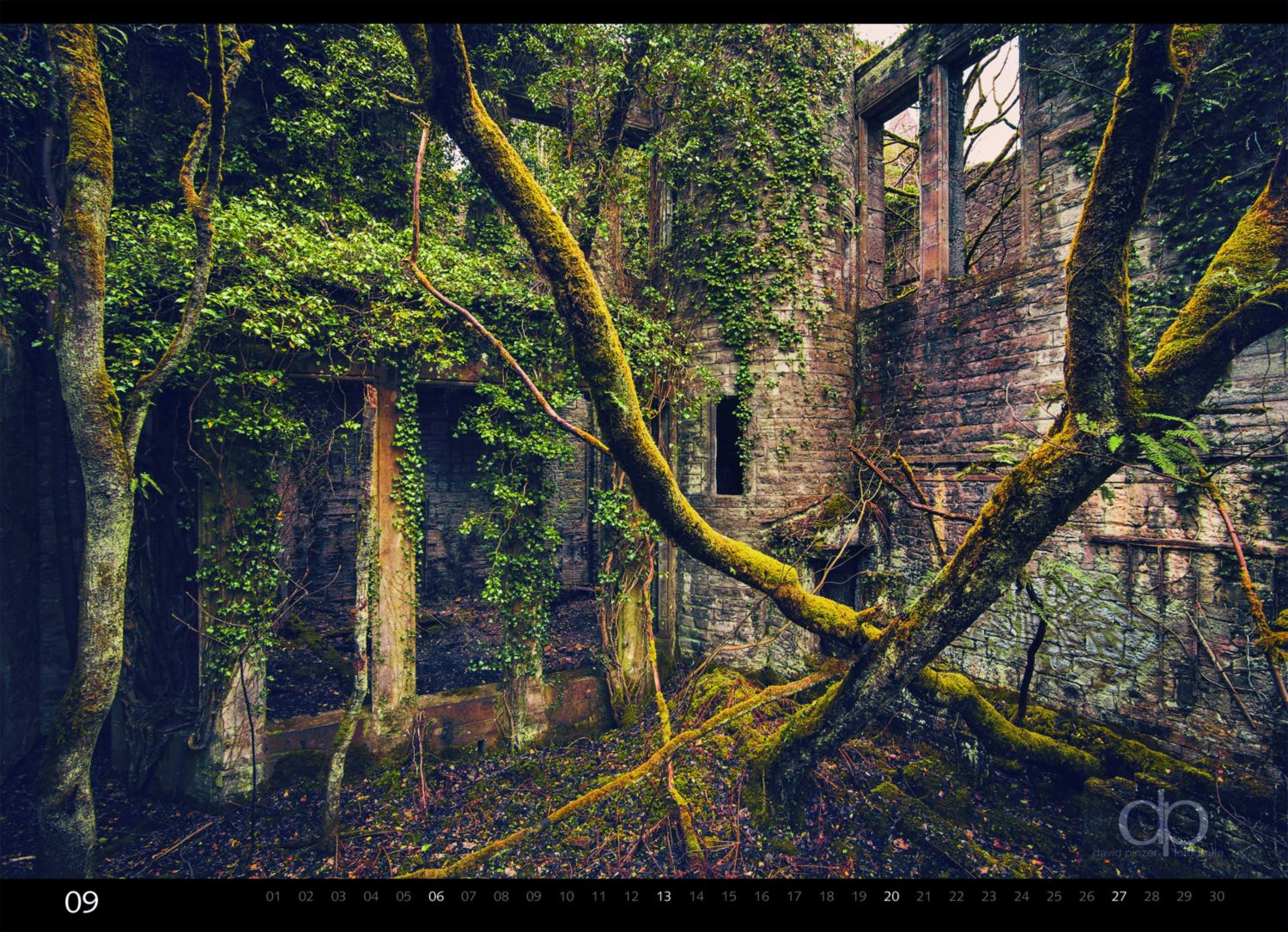 „Das aufwändigste ist die Recherche“, berichtet Pinzer. Man müsse da auch schon mal in Fremdsprachen googeln, aber viele Ort würden ihm inzwischen auch aus seinem Netzwerk zugetragen. Für die Fotos in dem nun vorliegenden Kalender hat er in den vergangenen Jahren unter anderem Schottland, Frankreich, Portugal und weitere Länder bereist. Wo genau die verfallenen Schönheiten vor sich hin verfallen, will er aber nicht verraten. Die Gefahr des Vandalismus-Tourismus sei zu hoch. Nur ein eingeweihter kleiner Kreis von Fotografen kennt die Orte. Manchmal kennt er auch den Eigentümer und hat eine Genehmigung, häufig aber ist er nicht ganz legal in den Gebäuden. „Das ist oft eine rechtliche Grauzone, die Regelungen sind in jedem Land anders“, berichtet er. Angst, ertappt zu werden hat er aber dennoch. Trotzdem nimmt er sich für die Aufnahmen Zeit. Allerdings ist ihm wichtig, dass er die Räume nicht verändert. „Ich arrangiere nicht“, erklärt er, auch wenn das angesichts der entstandenen Aufnahmen nur schwer zu glauben ist. „Nein, ich habe die Beine von dem Klavier nicht abgesägt“, den Raum in der Villa in Frankreich hat er genau so vorgefunden.