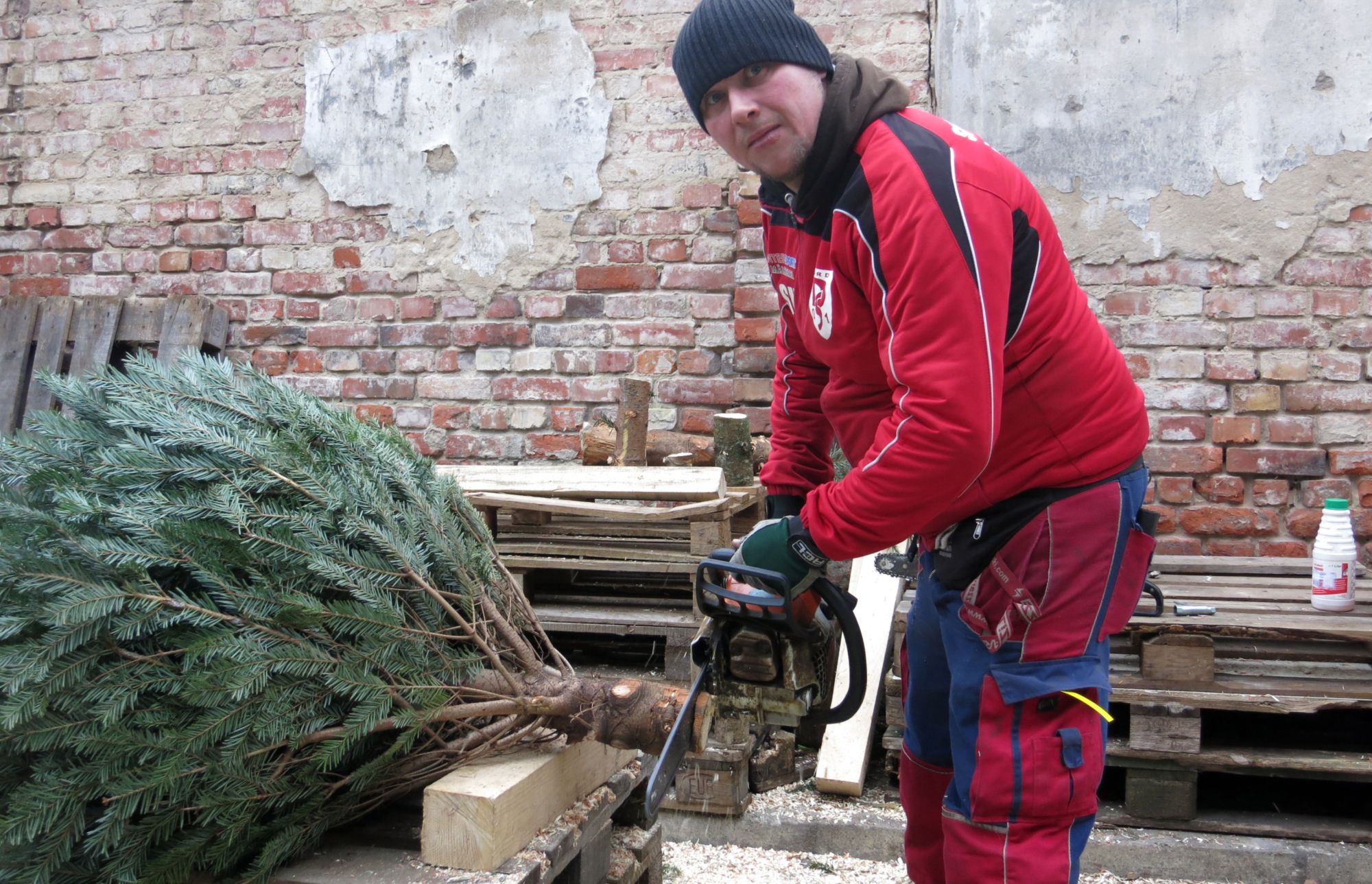 Im Hof stehen noch ein paar Giganten mit einer Länge von mehr als fünf Metern herum. „Die sind alle schon verkauft“, erklärt Hellmich für den normalen Bedarf bzw. hohe Neustadt-Wohnungen hat er Tannen bis zu einer Länge von 3,50 Metern im Angebot. Wie im letzten Jahr steht der Service. Anspitzen und Einnetzen ist gratis, die Lieferung innerhalb der Neustadt auch. Hellmich: „Es wäre gut, wenn die Weihnachtsbaum-Käufer ihren Ständer mitbringen oder die Größe wissen, dann sägen wir das Bäumchen passend.“