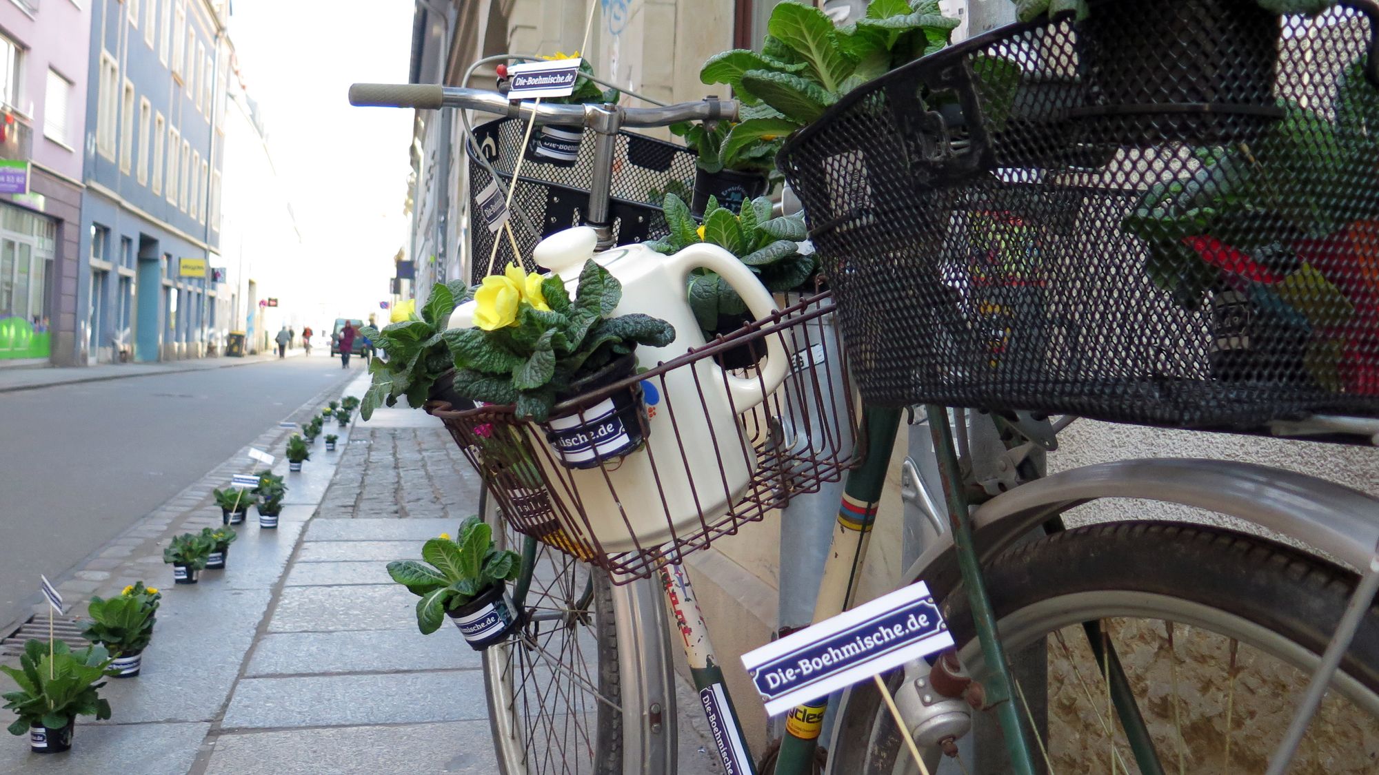 Primeln auf der BöhmischenSeit gestern Nachmittag begrüßen 200 Primeln die Besucher der Böhmischen Straße zwischen Alaun- und Rothenburger Straße. Zwölf Händler auf dem kurzen Abschnitt haben sich zusammen getan und künden mit der ersten Blumen-Aktion von ihrer gemeinsamen Aktivität.
