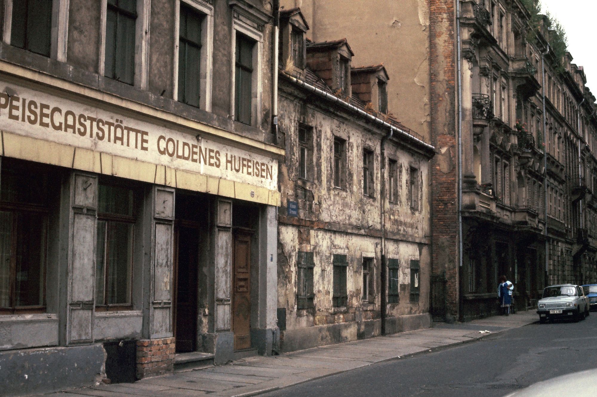 Also bin ich mit ihm zur Eisgrotte gelatscht und hab Frühstück spendiert und nach einer Ewigkeit standen wir dann vorm „Pferd“ – hier müssen wir rein, tönt er, das ist cool, das ist original Osten. Genervt trottete ich hinterher. Ich mochte den Laden nicht. Der Gestank vom Klo war mir immer zu derbe und der Wirt sah nicht vertrauenswürdig aus.