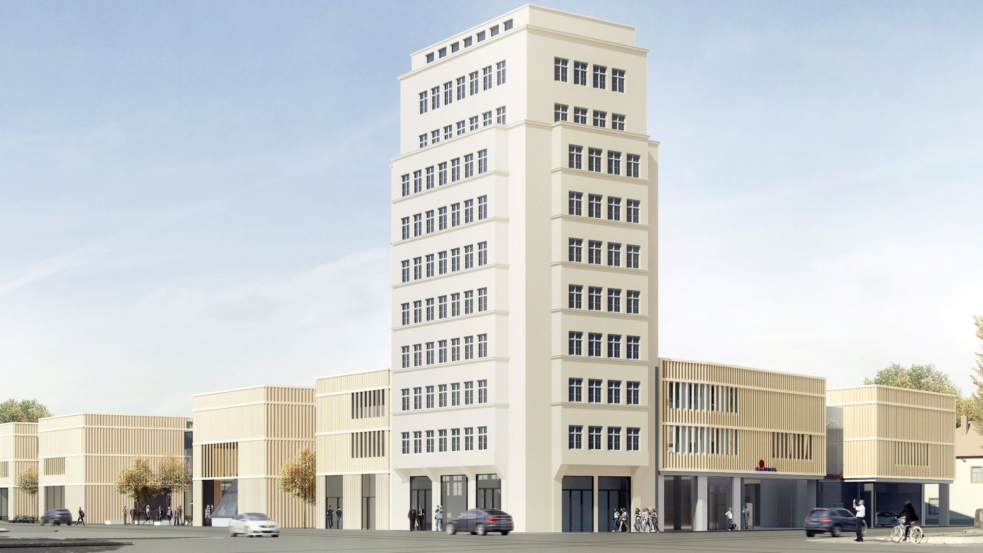 Die Flügel waren nicht geschützt. Sollten abgetragen werden, damit das Hochhaus als Solitär wirkt.
