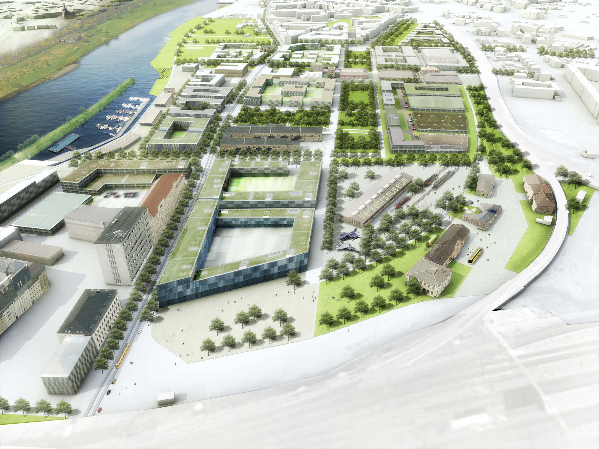 Die Beschlussvorlage legt neben einer sogenannten Kulturspange zwischen Elbe und dem Alten Schlachthof eine Grünachse mit Boulevardcharakter von der Alten Orangerie bis zum Hafengelände vor. Beide „Spangen“ sollen mit der Grünachse entlang der Elbe verbunden sein.