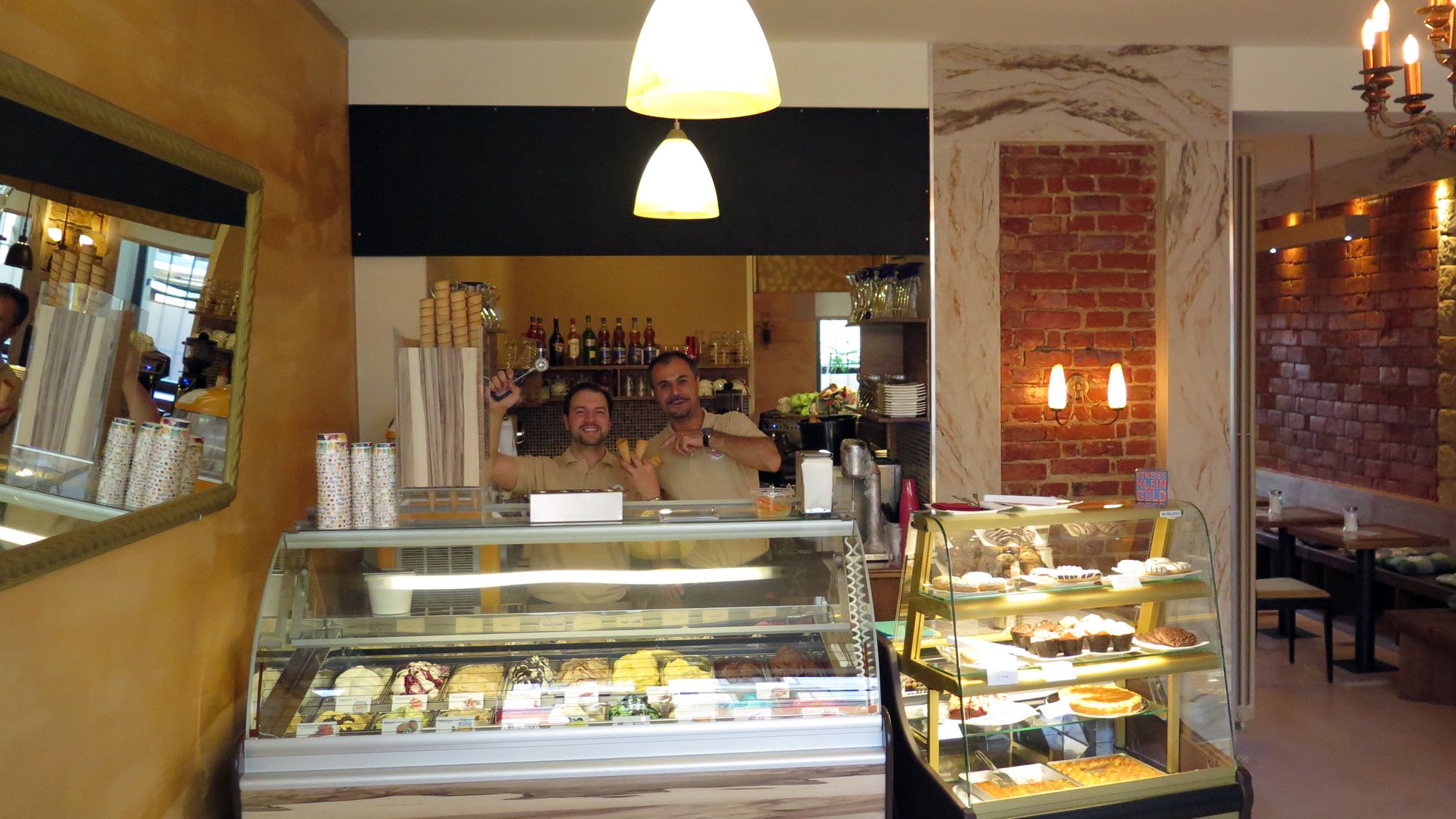 Wem das Eis bekannt vorkommt, es ist das gleiche wie im Eiscafé Venezia auf der Hauptstraße oder wie im DeGustybus auf der Alaunstraße – auf jeden Fall italienisches Eis. Eine meiner Lieblingssorten: „Mon Cherie“ hat Nizam aber noch nicht im Angebot. „Da werde ich mich drum kümmern, wir haben 18 verschiedene Sorten und werden immer mal ein bisschen wechseln“, verspricht er. Außerdem gibt es Kaffee und Kuchen und, leider ein bisschen versteckt, ein paar türkische Backwaren, die nun zu Bückwaren werden.