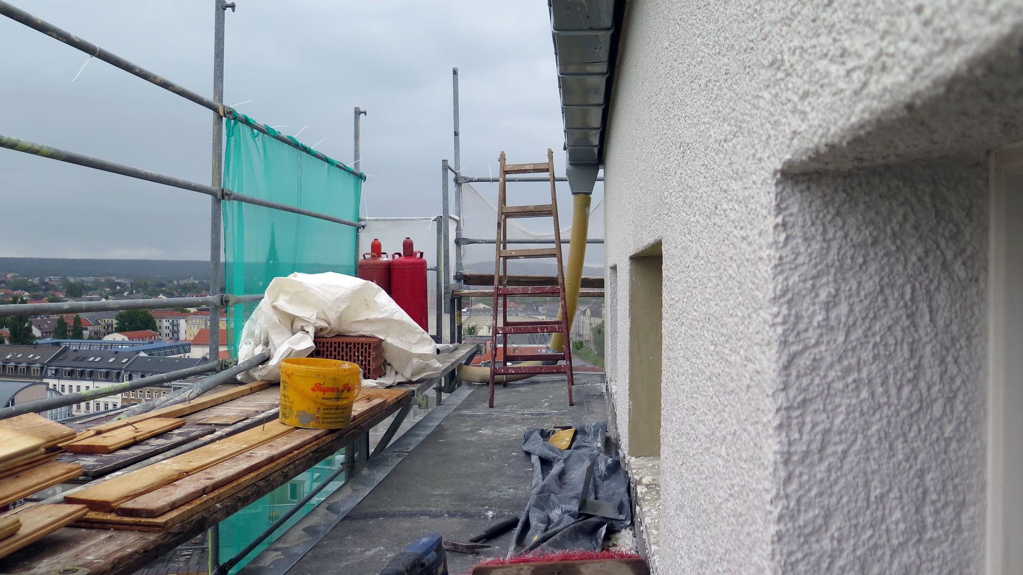 „Wir sind in enger Absprache mit Stadtverwaltung und Denkmalamt“, erklärt Sven Schirmer, der Pressesprecher der Dresdner Simmel-Niederlassung. Er führt durch das Treppenhaus, das erhalten werden musste, zeigt die Holzfenster und die neue Fassadenfarbe, die man derzeit durch die Planen nur erahnen kann. Das Haus wird mächtig weiß, die Farbe orientiert sich an der Originalgestaltung aus dem Jahre 1929. Wesentlich bunter ist die Farbe an dem Anbau, auch der sich in der Höhe deutlicher zurückhält als die ursprüngliche Beabauung. So wirkt der Riese vom Albertplatz noch dominanter.