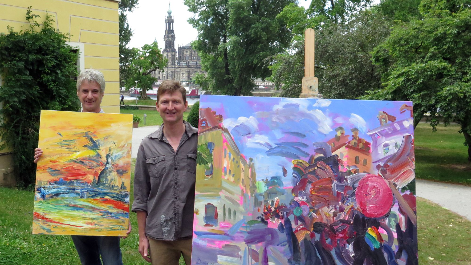 Die wenigen Bilder sind ein Vorgeschmack auf die große Vielfalt, die ab Ende Juli zu sehen sein wird. Auf einer 60 Meter langen Ausstellungsfläche werden rund hundert Gemälde im Garten des Japanischen Palais gezeigt. Doch das Bildensemble, das Werke sowohl von Künstlern als auch Autodidakten versammelt, darf nicht nur bestaunt werden. Die Gemälde stehen zum Verkauf und der Erlös kommt zu 70 Prozent der Finanzierung des eintrittsfreien Openair-Festivals in Dresden zu Gute.