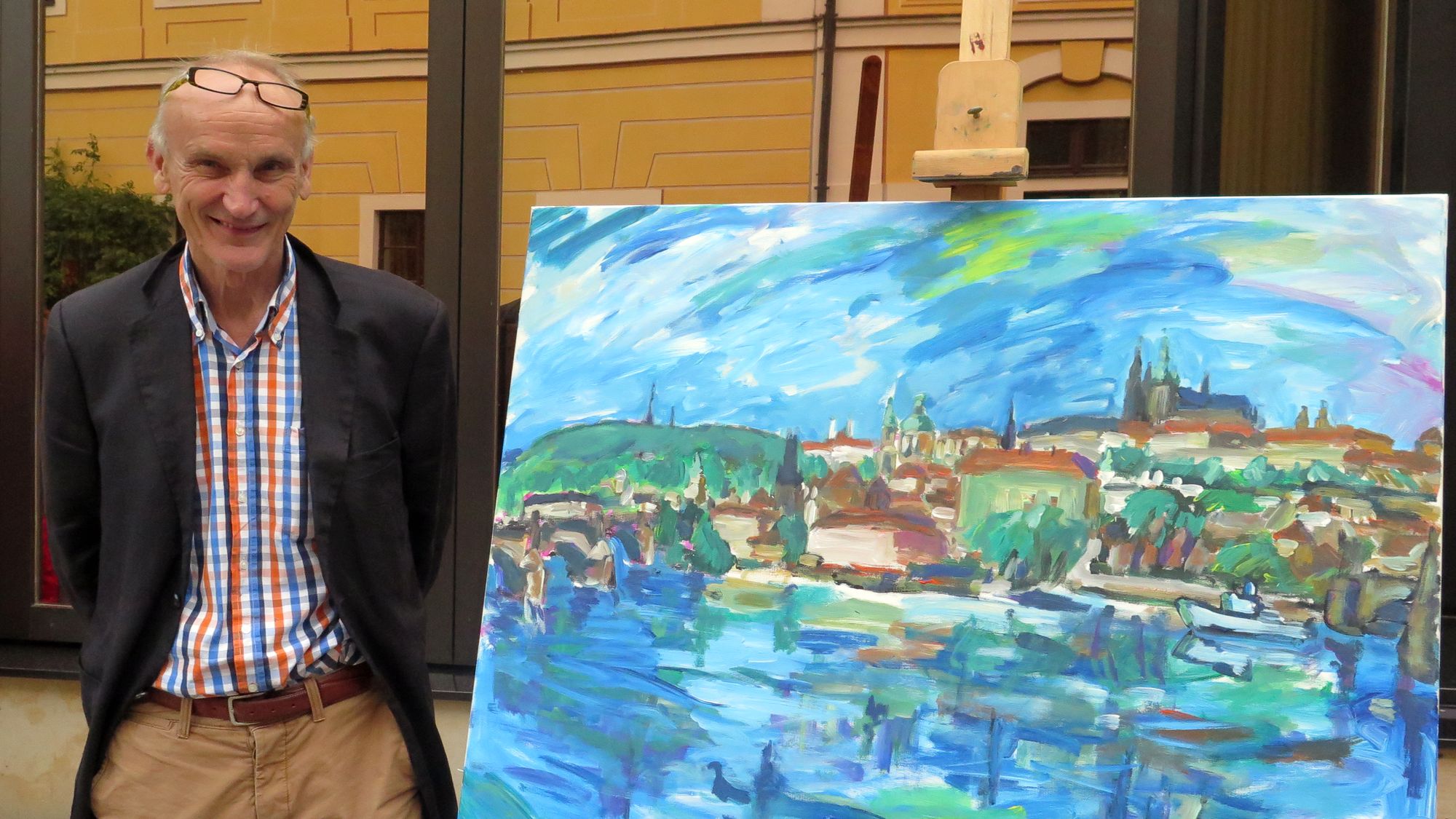 Die Bilder hat eigens für das Hotel Aleko Adamia ausgewählt. Er ist seit 2009 der Leiter des Pleinairs, der Freilichtmalerei, beim Palais Sommer. Unter anderem sind Werke von Jörn Diederichs, Uwe Grundmann und Roland Gräfe zu sehen. Der Radebeuler Gräfe erzählt, dass er mit seiner Stiftung den Palais Sommer unterstützt. Für Grundmann ist es Jahr für Jahr ein Bedürfnis, dabei zu sein, für ihn ist das der wichtigste Termin im Jahr: „Das Fluidum stimmt, hier trifft man internationale Kollegen vor einer tollen Kulisse.“