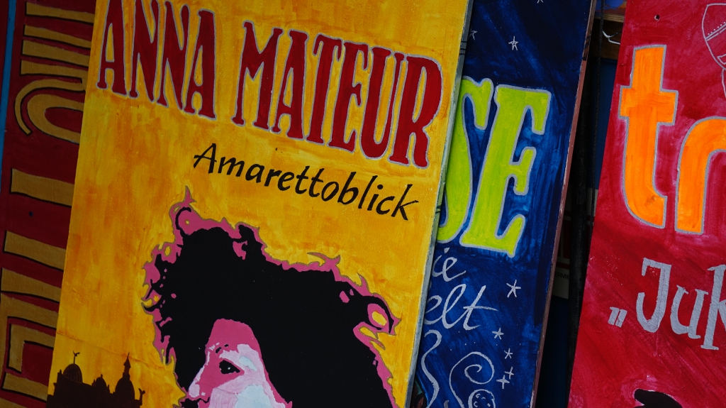 Falls die Achterbahn im Kopf bereits Loopings schlägt, empfiehlt der Veranstalter einen Besuch am romantischen Springbrunnen. Einfach abtauchen und den Humor auftanken, diesen Rat sollte sich auch Anna Mateur auf ihre Amaretto-Fahne schreiben.