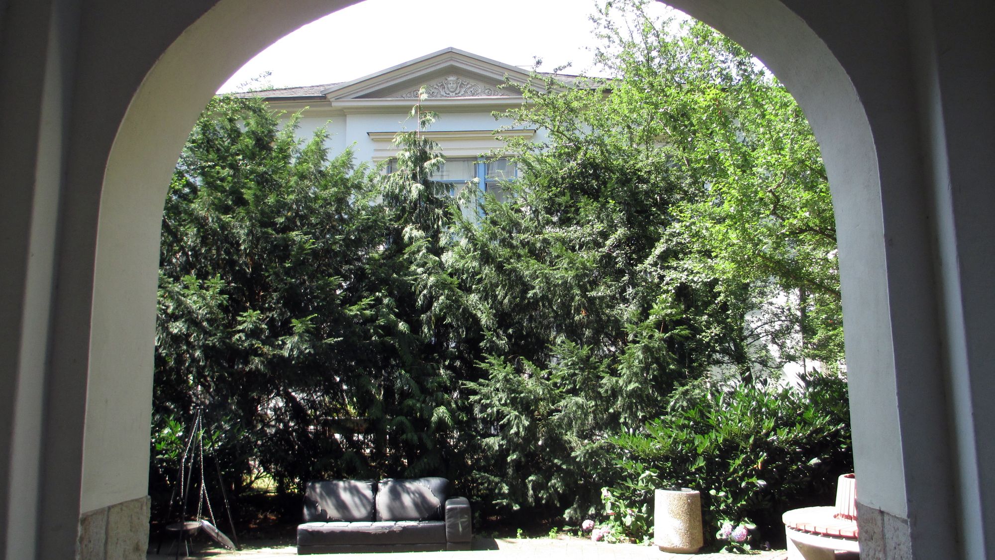 Aufgrund der wildwuchernden Natur werden Stadtführer zukünftig wohl auf eine Hebebühne angewiesen sein, um interessierten Touristen den Timä-Protzschuppen zu zeigen. Für die Betrachtung der Villen-Betrachter wurde im Innenhof unter dem Motto Watch the watchmen! eine Couch installiert.