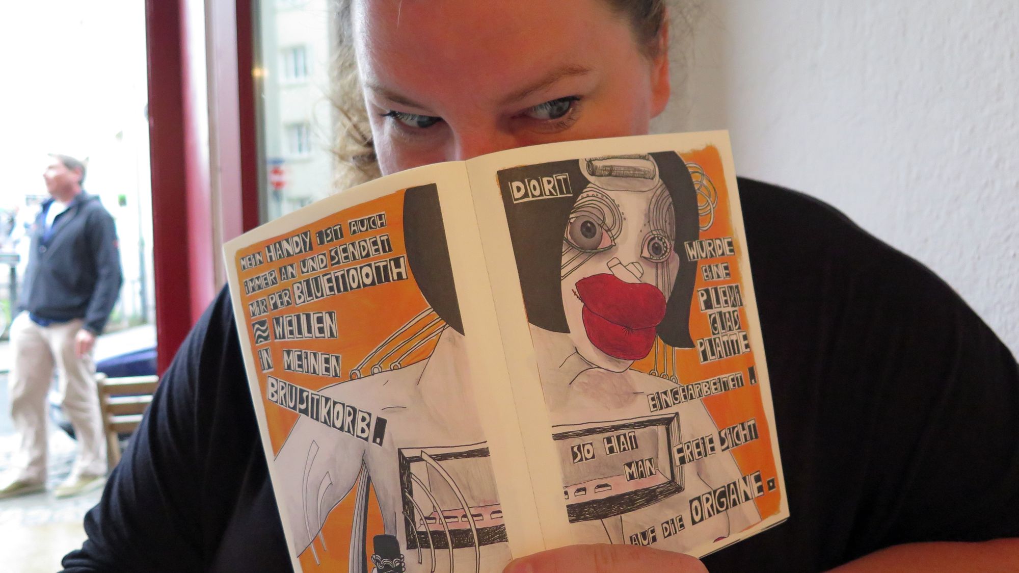 „Ich bin ein Auge-Ohr-Typ, male seit ich klein war“, beschreibt sich Anna selbst. Als sie klein war. Also irgendwann in den 80er des vergangenen Jahrhunderts kam Anna Maria Scholz, so ihr bürgerlicher Name, auch zum ersten Mal mit Comics in Berührung und ist seitdem Fan. „Wenn Du jetzt an Superhelden denkst, hast Du keine Ahnung von Comics“, fährt sie mir über den Mund, dabei habe ich noch gar nicht protestiert. Ob ich denn Nicolas Mahler kenne? Ich kontere mit Art Spiegelmann, bekenne aber, von Comics nicht wirklich eine Ahnung zu haben.