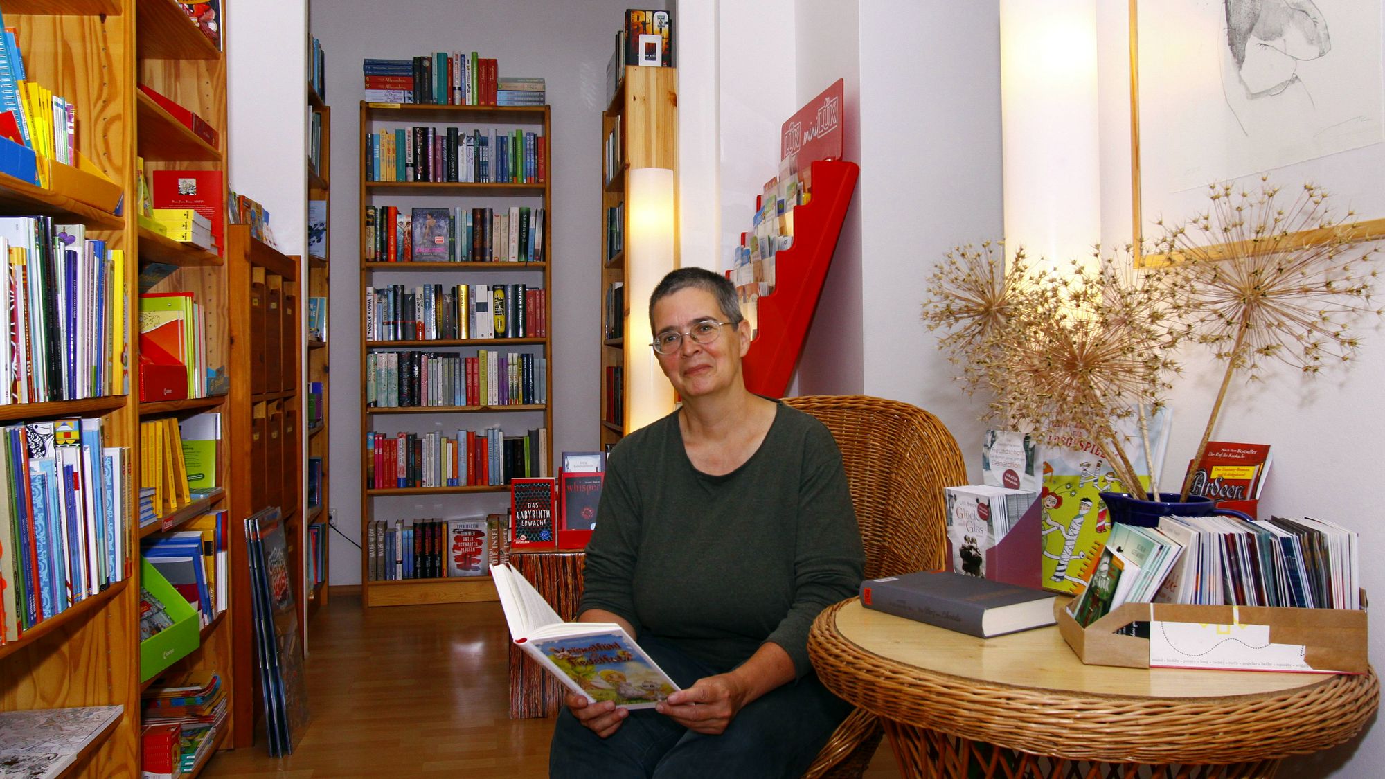 „Kinderbücher verkaufen wir am meisten“, berichtet Cornelia und zeigt gleich eins von Thomas Jurisch, dem Neustädter Poetenflüsterer. Den runden Geburtstag wollen die Pusteblümler nun groß feiern und haben ein dickes Programm gestrickt.