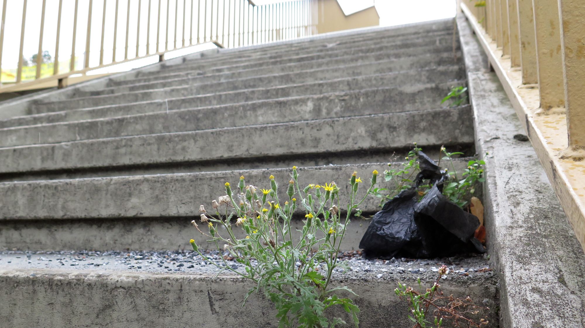 Die Fußgängerbrücke wurde am 7. März für den Fußgängerverkehr gesperrt. (Neustadt-Geflüster vom 13. März 2015). Die Brücke war vom Straßen- und Tiefbauamt überprüft worden. Das hatte dann kurzerhand die Sperrung veranlasst. Vor allem die Treppe ist das Problem. Etliche Betonstufen waren bereits zerfallen, die Treppe nicht mehr sicher begehbar.