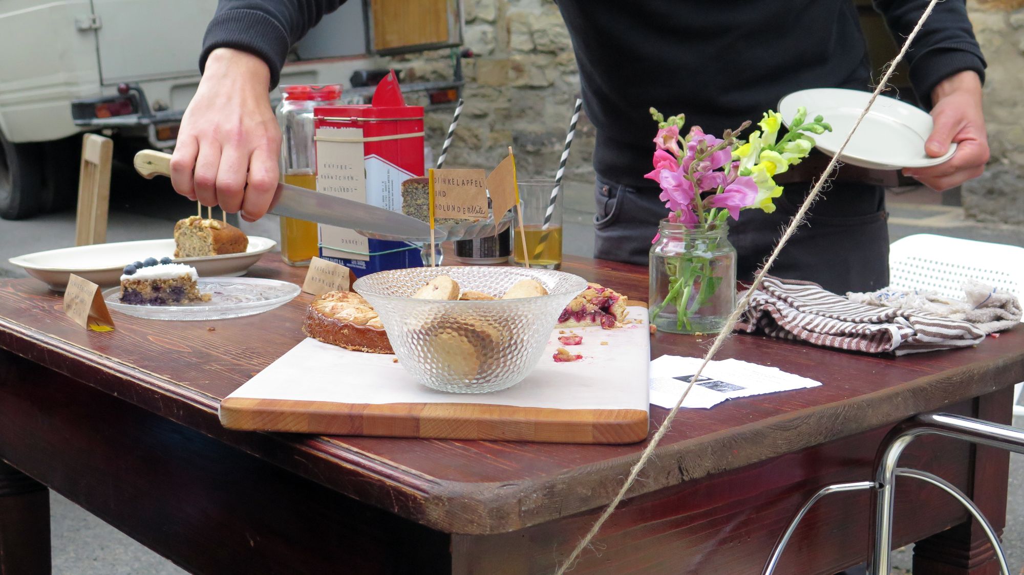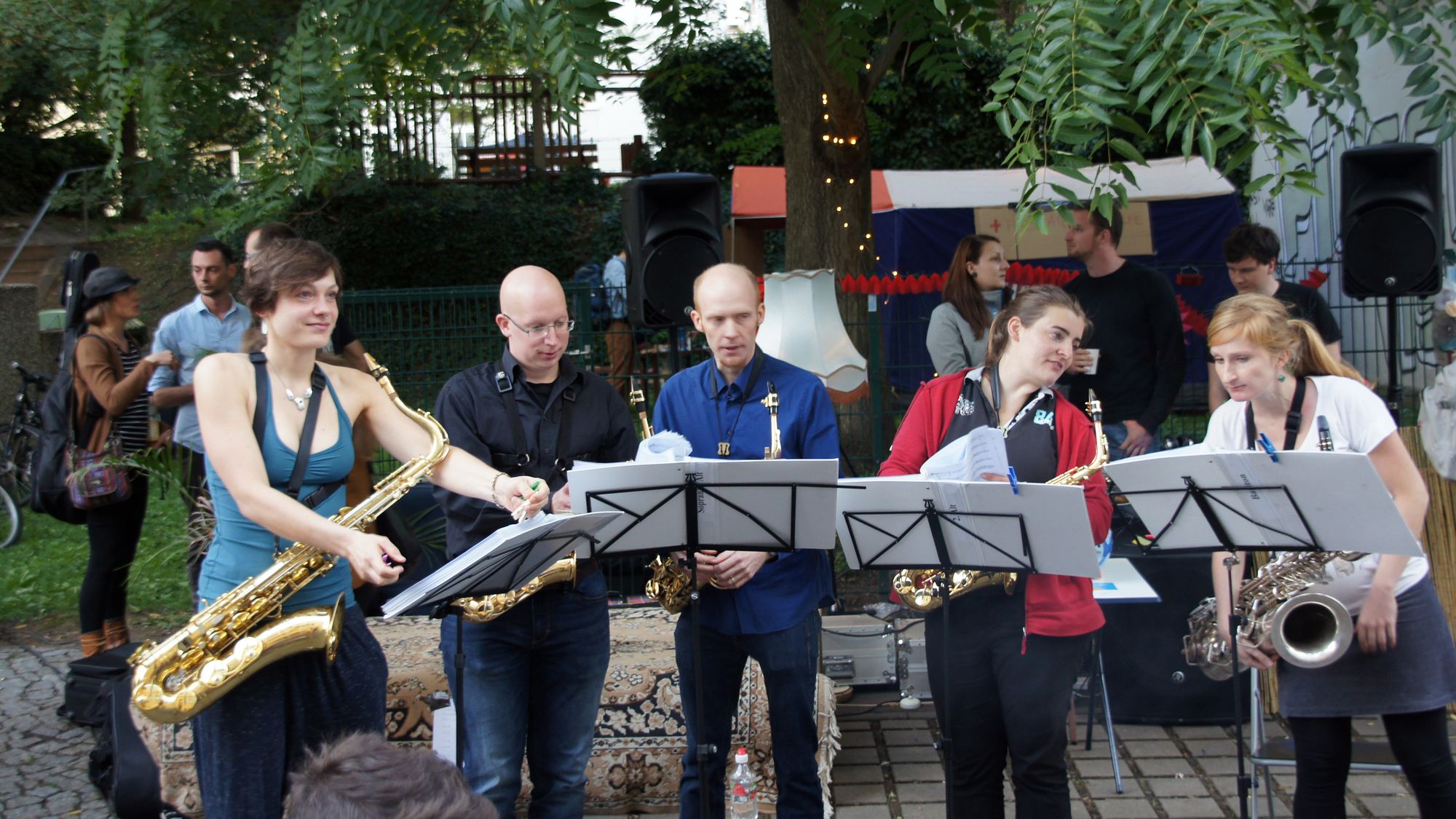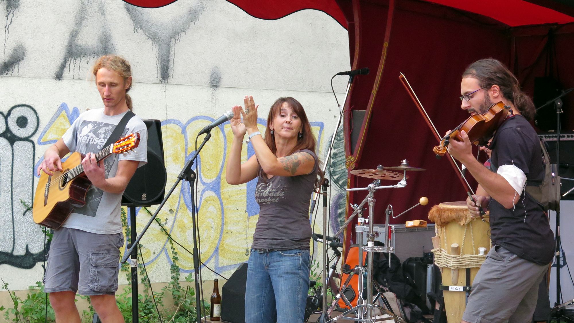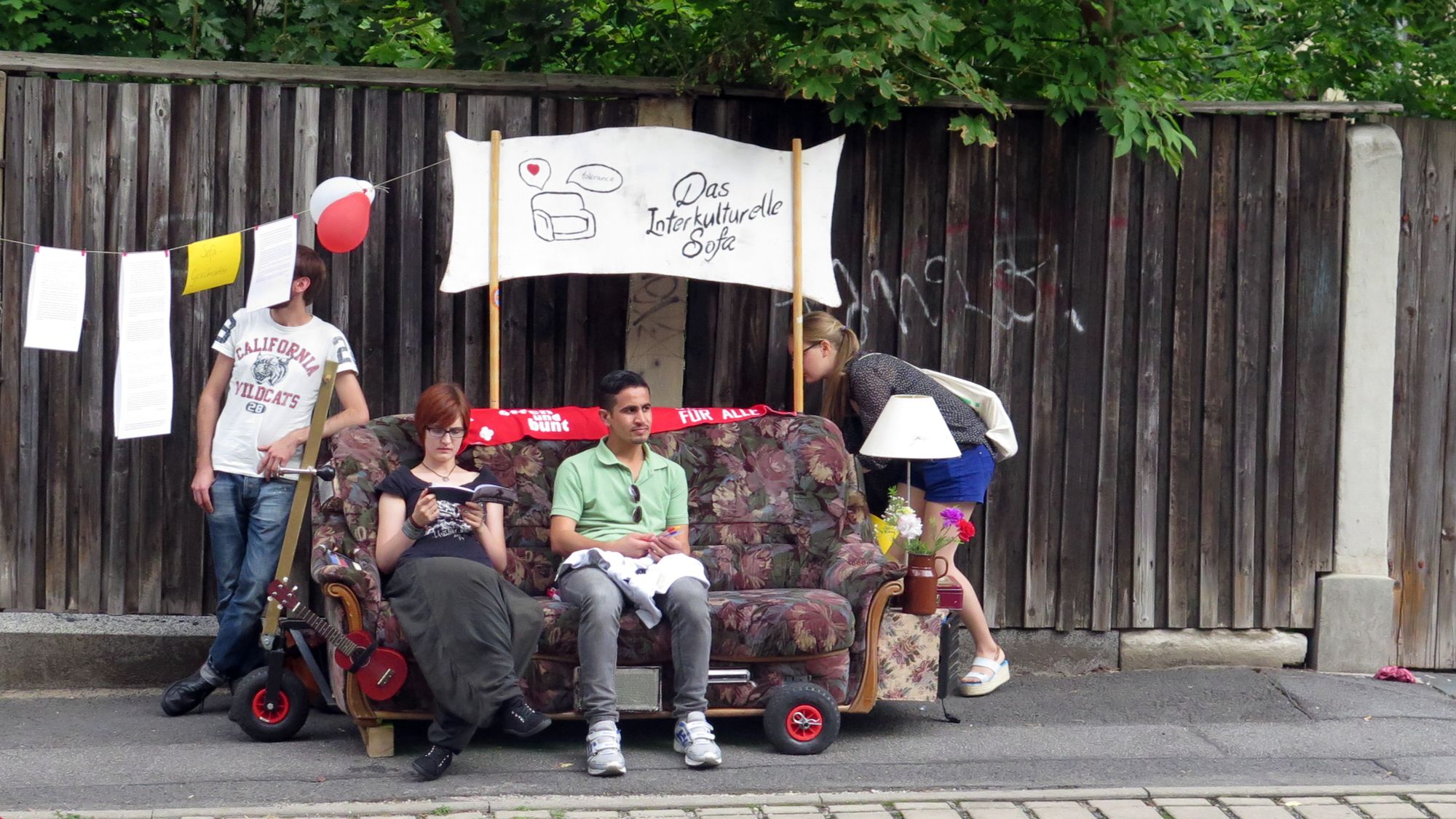 Ein kleines Mädchen flitzt an mir vorbei. Sie ist furchterregend schwarz und violett geschminkt. Ein paar Jungs mit Wasserspritzen setzen ihr nach. Sie nehmen zwar keine Rücksicht auf Erwachsene, haben aber doch keine Chance. Ich bin mittendrin im bunten Trubel auf der Rudolfstraße. Neben mir der Kinderschminktisch, vor mir eine Reihe Luftballons, dazwischen die flitzenden Knirpse. Linker Hand ein Zelt. In Vortragsstimmung bin ich jetzt nicht gerade, doch ich sehe, auch dort sitzt jemand drin. Ein paar Meter weiter eine Folk-Band mit Geige und Gesang. Das Publikum sitzt gemütlich auf dem Spielplatz Ottostraße.