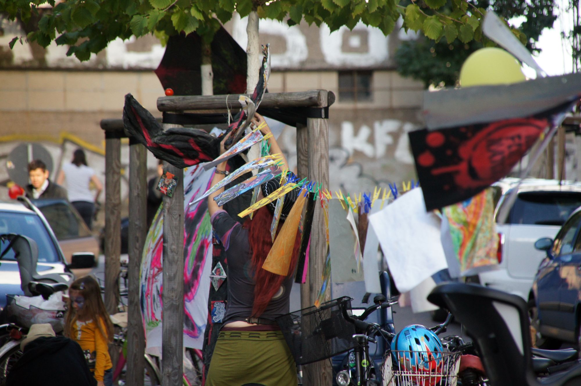 Sebastian ist auch am Tag danach noch die Begeisterung anzuhören. „Es gab nicht einen Zwischenfall – Ordnungsamt und Polizei haben uns in Ruhe gelassen“. Dabei hatte es am Morgen noch gar nicht so gut ausgesehen. Trotz fetter Parkverbotsschilder standen noch unzählige Autos herum. „Wir sind dann mit dem Megafon durch die Straßen gezogen und haben die Anwohner drauf hingewiesen“, erzählt Sebastian, das habe gewirkt. Die restlichen Autos wurden kurzerhand in die Gestaltung mit einbezogen.