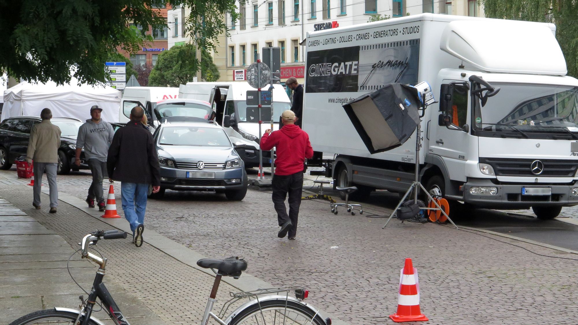 In einem Haus auf der Königsbrücker Straße wurde heute für den neuen Sachsen-Tatort gedreht. Zu diesem Zweck hat die Filmcrew fast den kompletten Fußweg zwischen Bibliothek und Sparkasse zugestellt und die Katharinenstraße versprühte heute den Charme eines Campingplatzes.