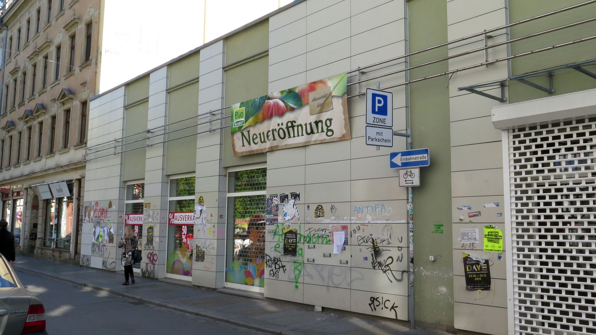 Das Haus war vor fünf Jahren komplett neu gebaut worden. Zuvor war hier ein Supermarkt der niederländischen Spar-Gruppe drin. Rossmann hatte lange an dem Haus gebaut, im September wurde die Filiale eröffnet, die war vorher gegenüber beheimatet. Dort residiert jetzt ein Schnäppchen-Markt. Die Rossmann-Filiale ist zwischenzeitlich ins Hochhaus am Albertplatz umgezogen.
