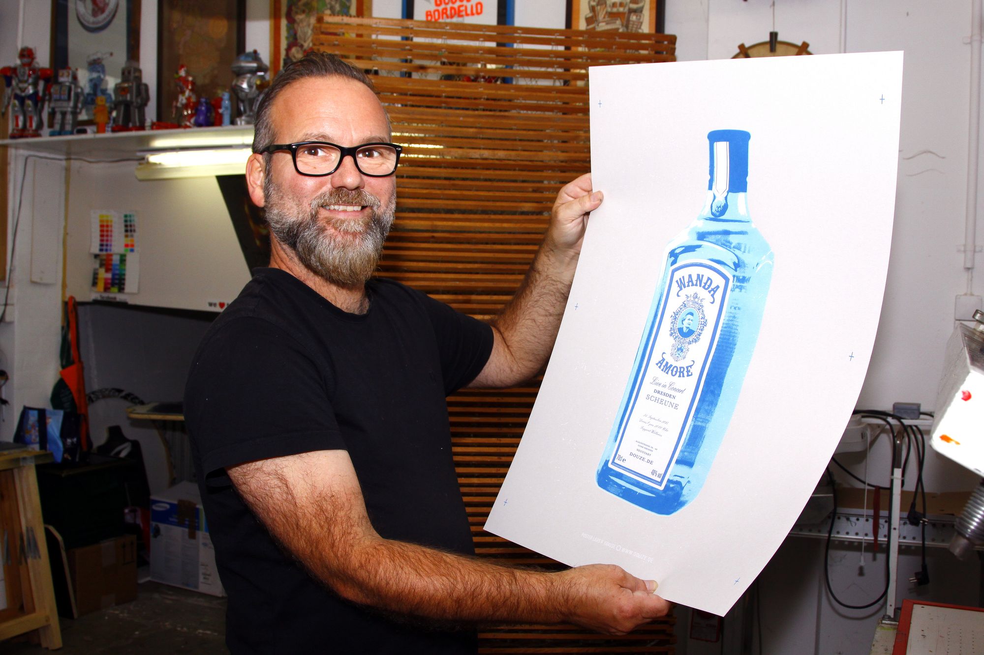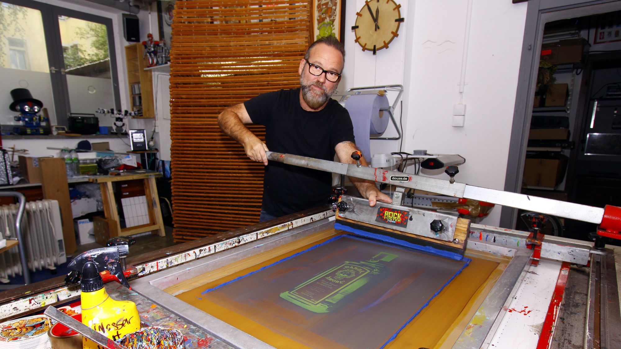 Beherrscht die Kunst des Siebdrucks: Lars P. Krause. Foto: Youssef SafwanHeute und Morgen wird die Scheune wieder zum Anlaufpunkt für Freunde der gesiebten Drucke. Der Neustädter Künstler Douze, auch bekannt als Lars P. Krause hat gerufen und alles was Rang und Namen hat, kommt zur Siebdruck-Gigposter-Ausstellung „Colored Gigs“.