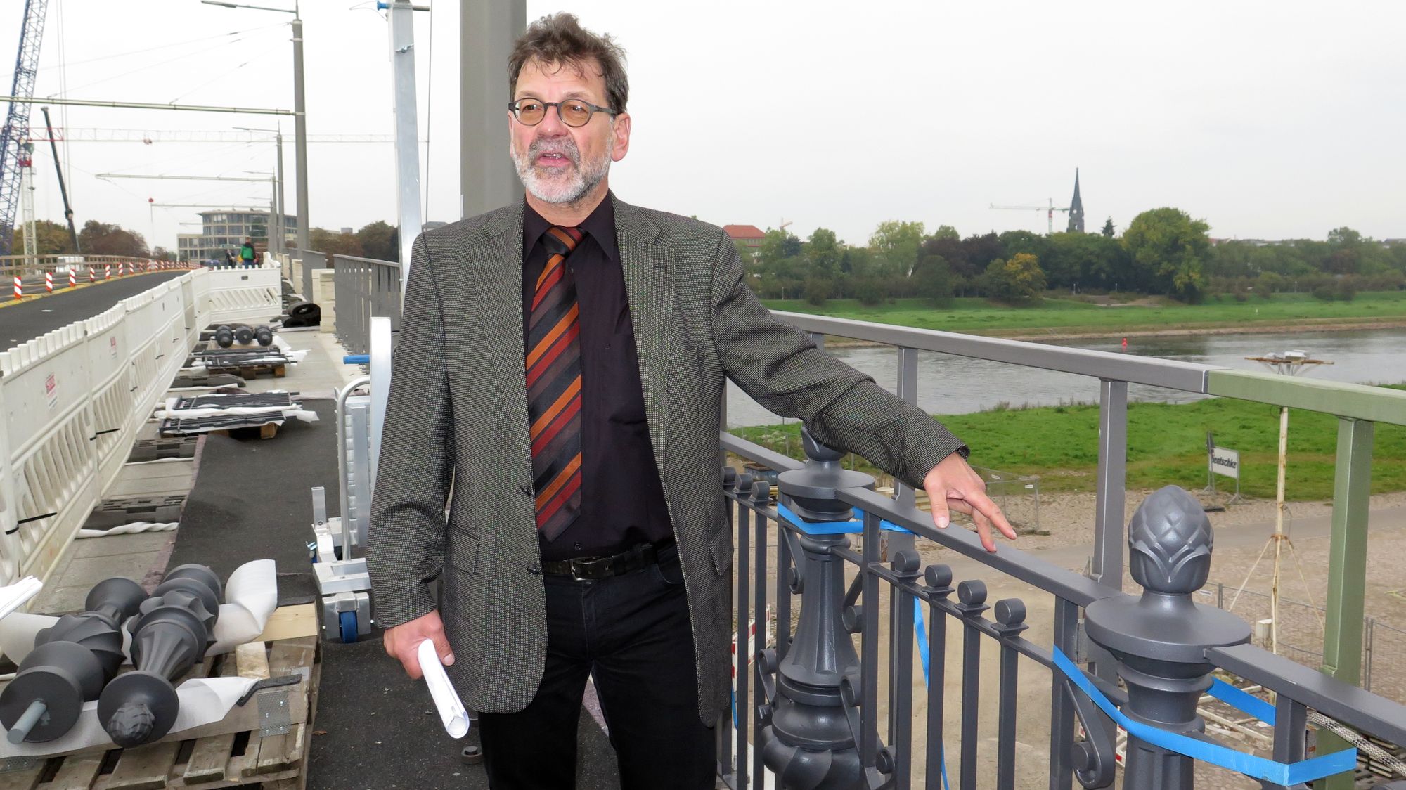 Reinhard Koettnitz zeigt das neue alte Geländer„Das ist aber kein Problem, der Endtermin im Sommer 2016 wird eingehalten“, erklärt Koettnitz. Allerdings gäbe es Überlegungen, die Vollsperrung der Brücke für den Auto-Verkehr etwas nach hinten zu schieben. „Die derzeitige Verkehrsanbindung funktioniert, endgültig entscheiden wir das aber erst, wenn neue Verkehrszahlen vorliegen“, sagt Koettnitz.