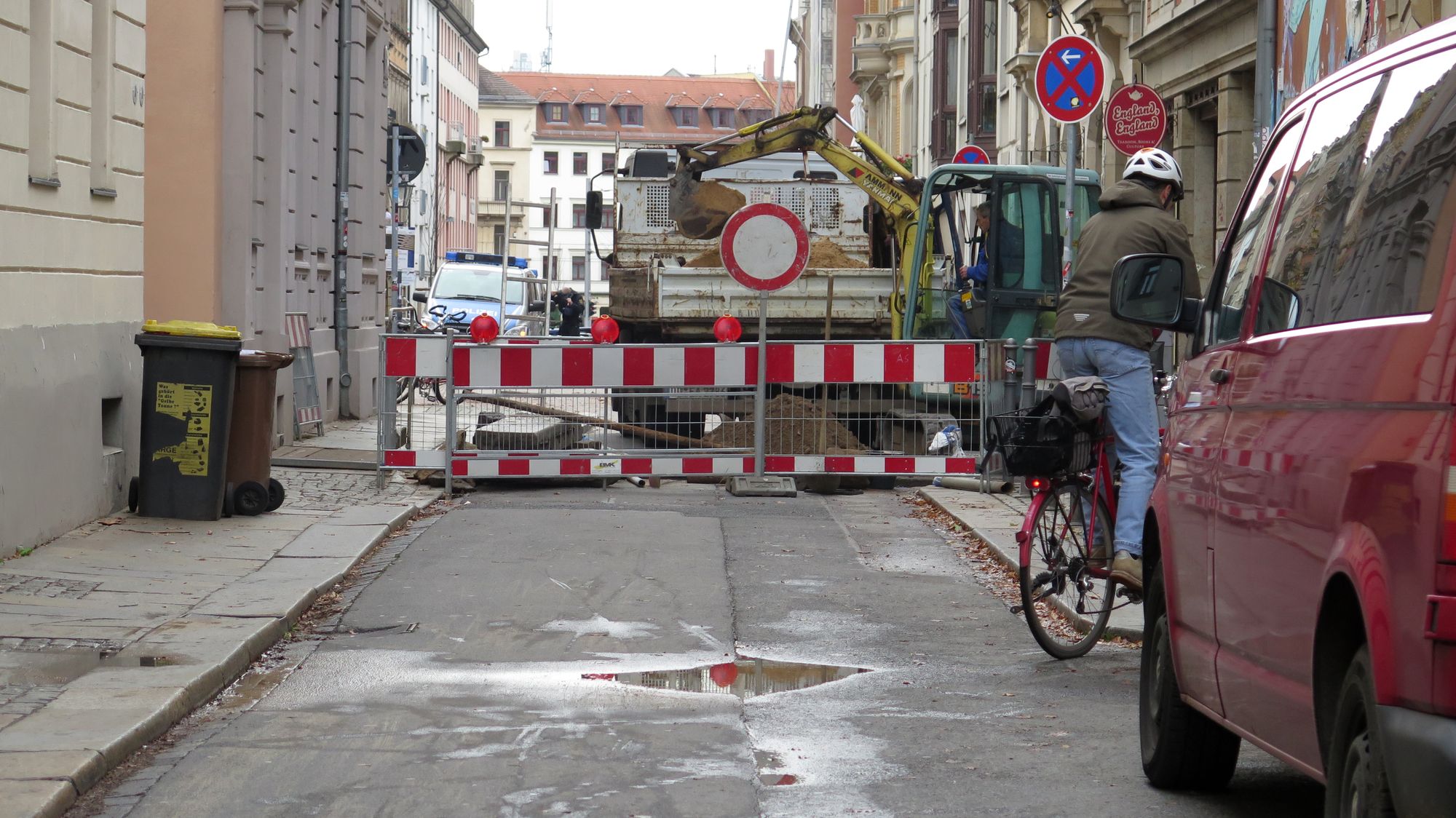 Seit Montag ist die Martin-Luther-Straße zwischen Louisenstraße und Martin-Luther-Platz gesperrt. Radfahrer und Fußgänger kommen aber durch. Der Grund sind Arbeiten der Stadtwerke.