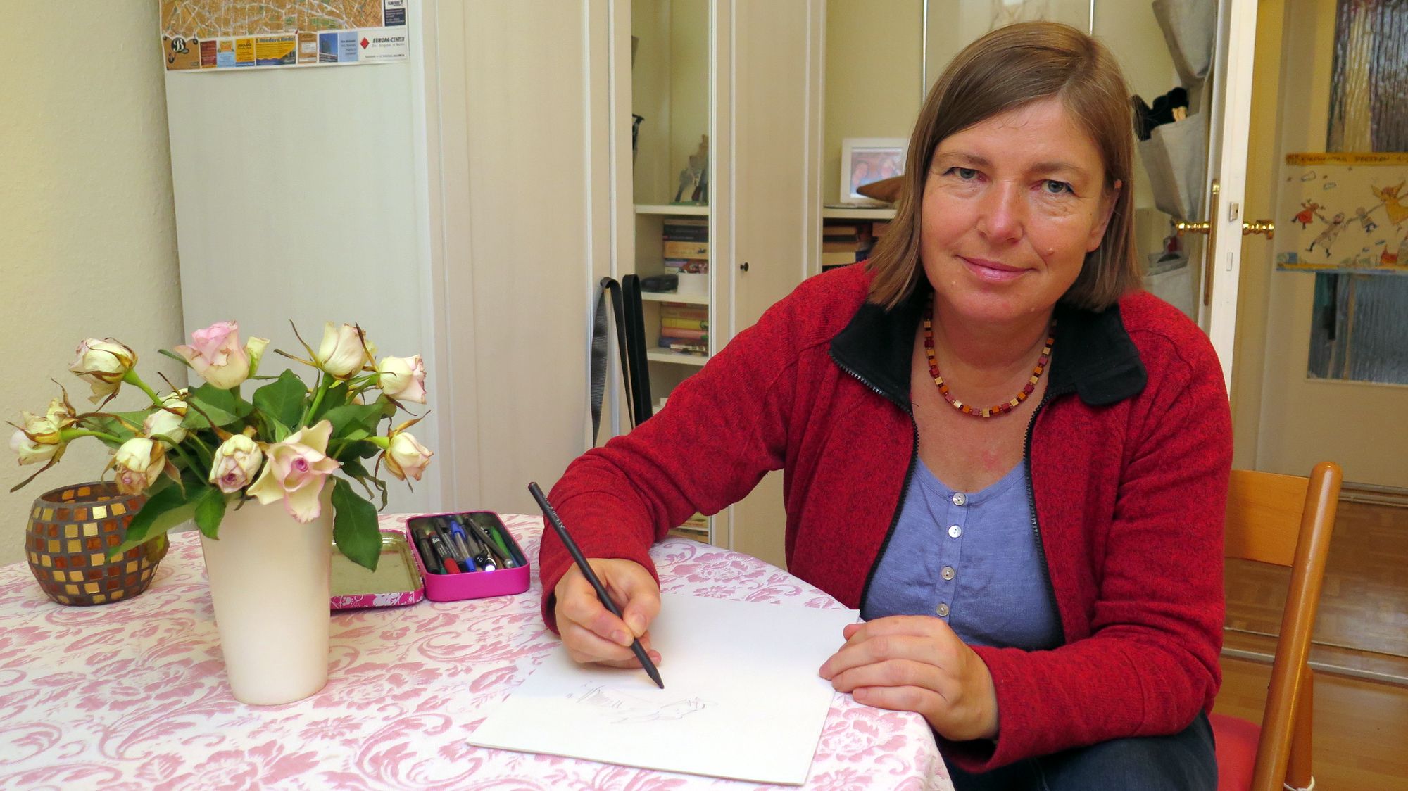 Zeichnen ist ihr Hobby.Wenn im Sommer die Sonne auf ihre Dachgeschoss-Wohnung in der Jägerstraße prasselt, dann macht sie sich an die Arbeit. „Im August müssen wir fertig sein“, erzählt sie und lacht: „Da ist es mit der Winterstimmung nicht so einfach.“ Anschließend werden die Kalender gedruckt und liegen rechtzeitig im November im Handel bereit. Hinter den Türchen verbirgt sich immer eine kleine Überraschung. Und wenn am 24. Dezember alle Türchen geöffnet sind, sieht das Bild noch ein kleines bisschen bunter und wimmelnder aus.