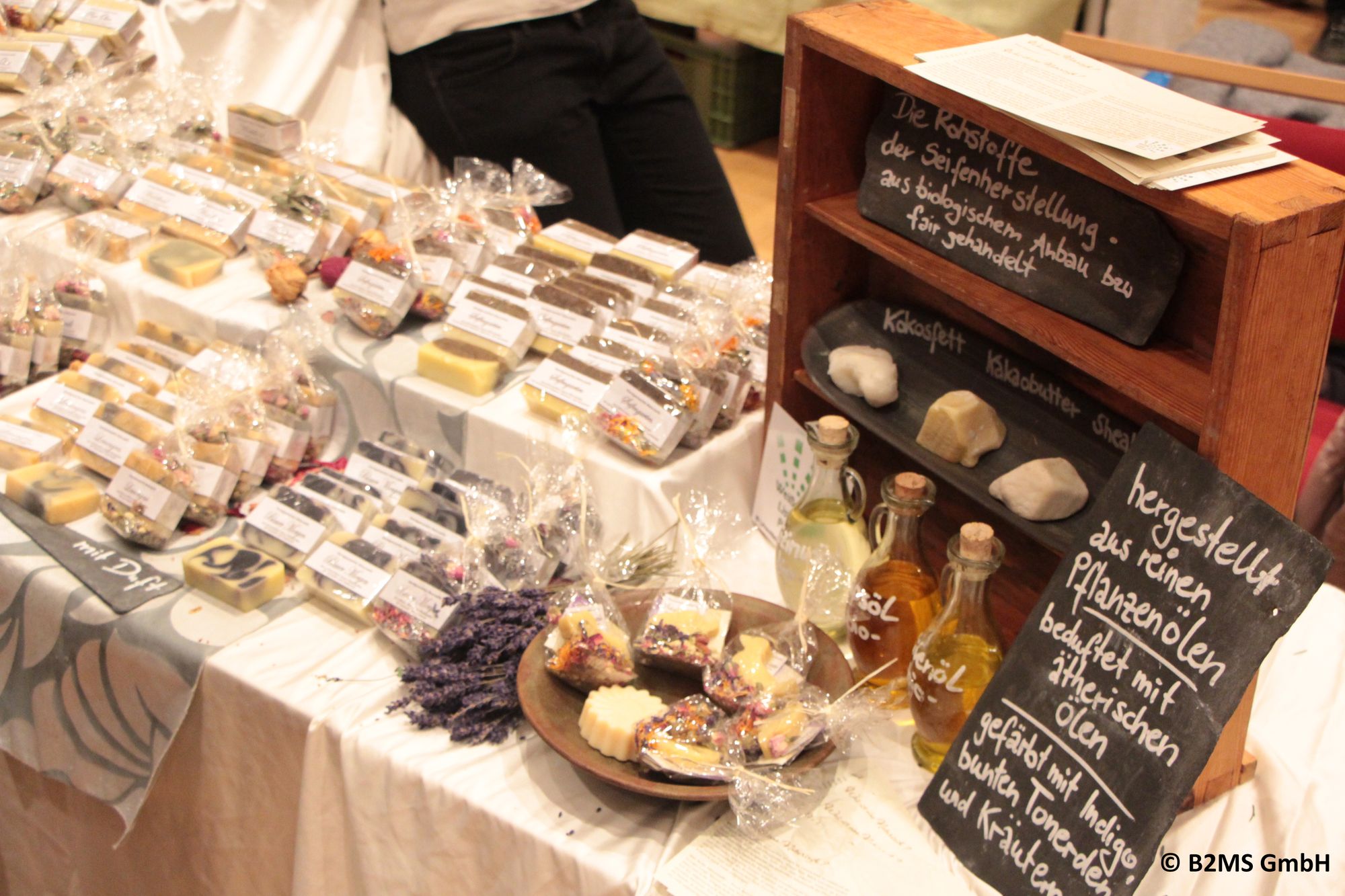 Global Organic Textile Standard – das Zeichen für faire und biologische Textilien – Foto: PR/B2MS GmbHZu finden sind Produkte und Geschenkideen, welche nachhaltig, fair und regional mit viel Liebe hergestellt wurden. Von den Händlern können die Besucher mehr erfahren über den Herstellungsprozess und die Idee hinter dem Produkt. Die Palette reicht dabei von nachhaltigem Schmuck, fairer Seife und Holzspielzeug über Taschen, Kleidung und Upcycle-Ideen bis hin zu Naturkosmetik, Gewürzen und wundervollen Kleinigkeiten zum Verschenken und zum Behalten. Auch Honig, Naschereien und Kaffee aus nachhaltigem und fairem Anbau dürfen natürlich nicht fehlen.