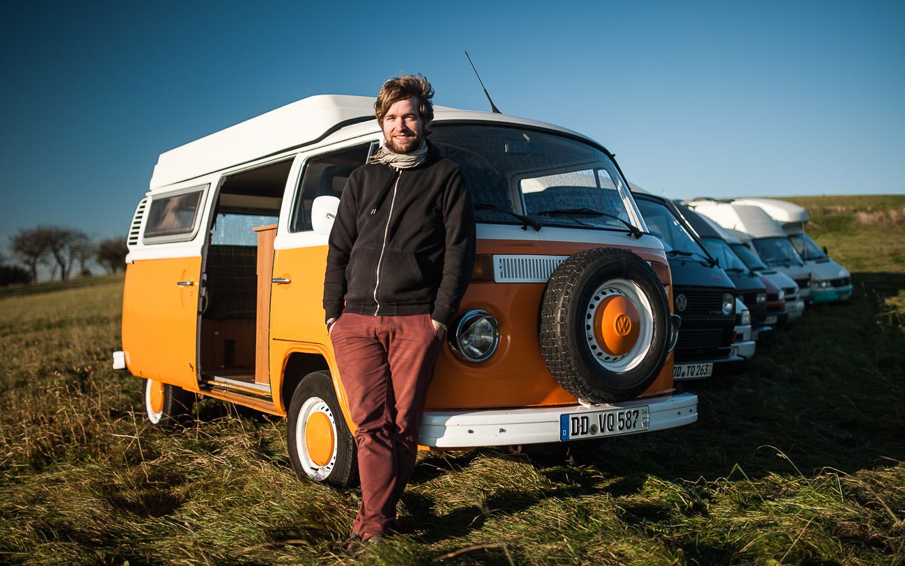 Böcky und seine BusseBöcki, der eigentlich Jan Böckenhauer heißt, beginnt zu erzählen. Er ist in Parchim aufgewachsen, hat nach einigen Umzügen aber seine Heimat in der Neustadt gefunden. „Hier passt einfach alles, Leute und Leben“, sagt der 30-Jährige und grinst schelmisch. Eigentlich hat er mal was mit Zahlen gelernt, dann auch als Steuerfachangestellter gearbeitet. Bis dann dieses Ding mit dem Kleinbus war. „Wir hatten einen T3-Camper in der Familie, mit dem sind wir oft in den Urlaub gefahren, aber im Alltag stand er rum“, also hat er versucht ihn zu vermieten. Erst an Freunde, dann schwappte die Sharing-Economy-Welle heran. „Aber für so ein altes Fahrzeug gab es keine geeignete Plattform“, erzählt er. Inzwischen hatte er schon weitere Busse angeschafft und ein Unternehmen gegründet. Der Name: „IndieVans“.