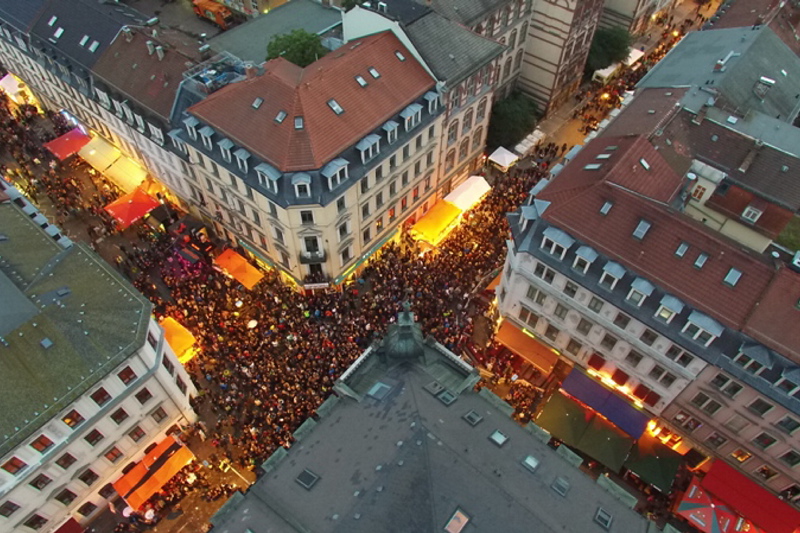 Das größte Gedränge konnte die Agentur mit ihrem Drohnenrundflug nicht aufnehmen. Das fliegende Auge war nur bis 22 Uhr im Einsatz. „In den späteren Nachtstunden hat sich die Besuchermenge noch einmal erhöht“, heißt es in der Analyse.