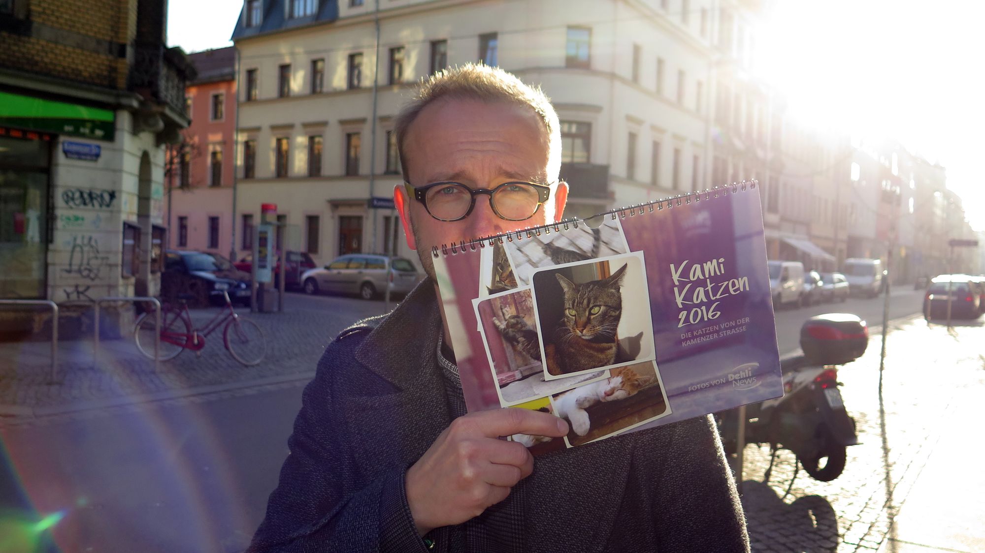 Meist fläzen sie nur bequem auf nem Moped oder Fenstersims, aber manchmal sind sie auch toll in Aktion, die „Kami-Katzen“. Der Fotograf Frank Dehlis hatte vor rund drei Jahren festgestellt, dass sein Arbeitsweg entlang der Kamenzer Straße von Katzen gesäumt ist. Wie ein Paparazzo lichtet er seitdem die Miezen und Kater bei allen möglichen und unmöglichen Leibesübungen ab. Die Ergebnisse der Schnappschüsse finden den Weg auf seine Facebook-Site und in einen handlichen Tischkalender. Erstmals in diesem Jahr hat sich Dehlis nun auch getraut, einen größeren Kalender heraus zu bringen. Das A4-Querformat taugt vermutlich sehr gut für einen Küchenschrank.
