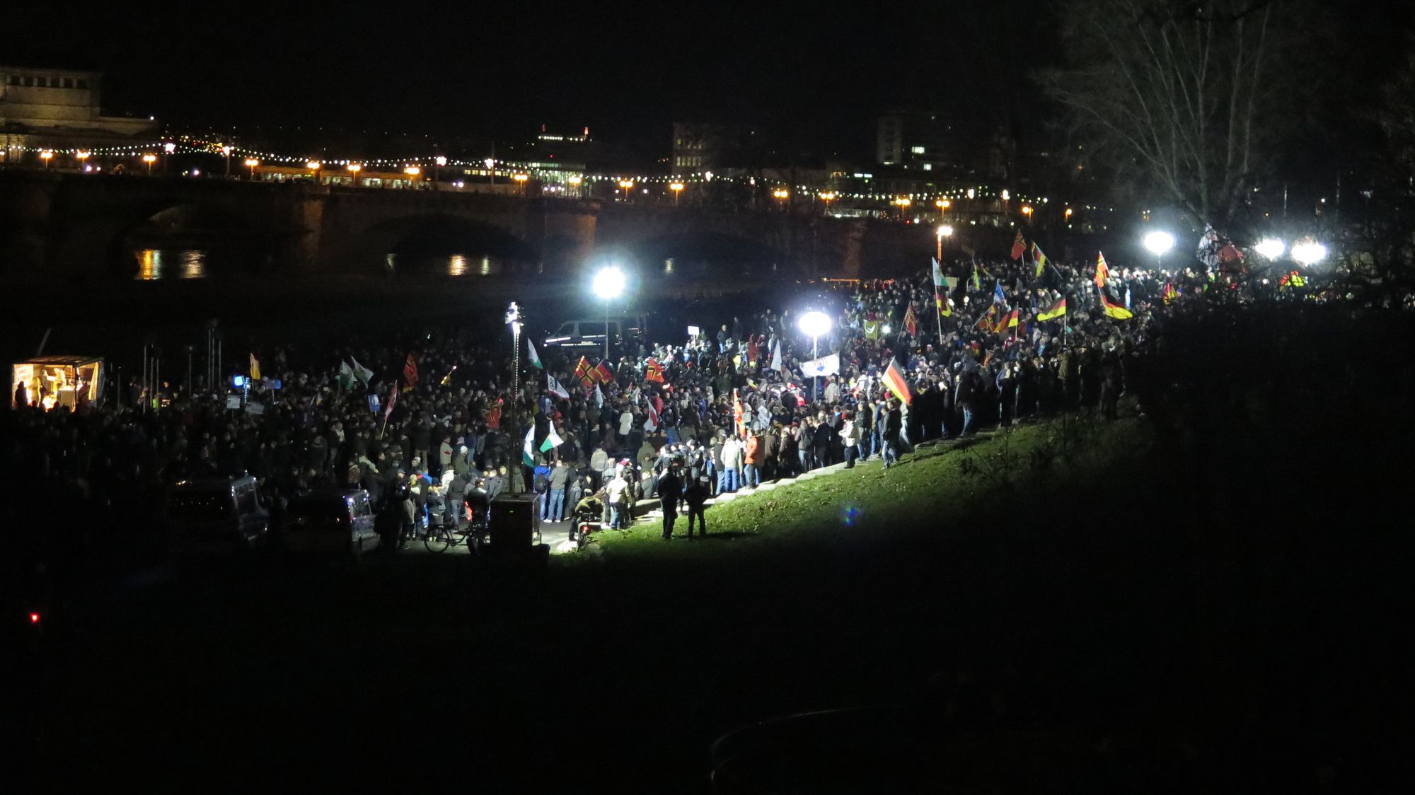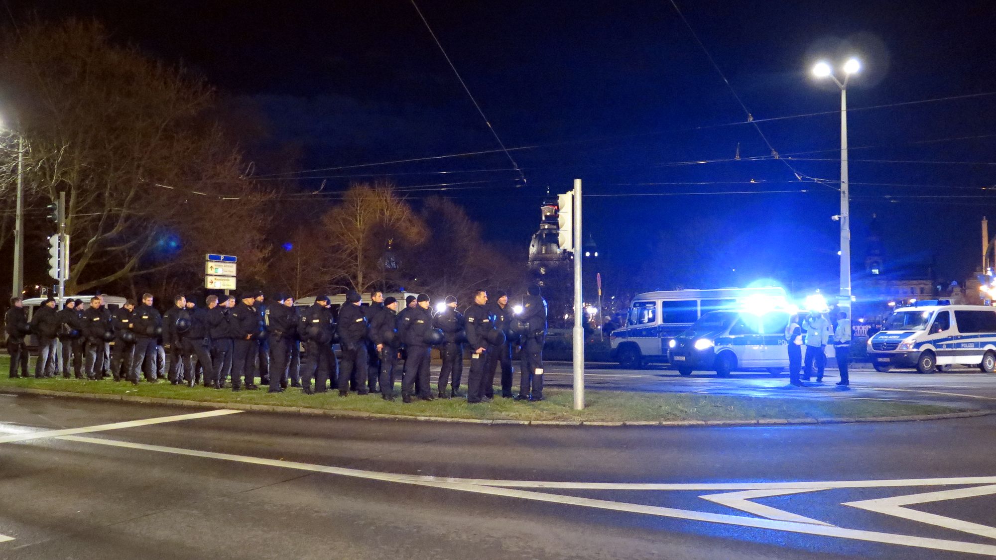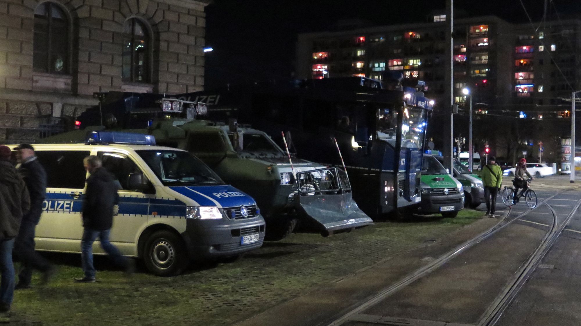 Massive Sicherheitsvorkehrungen. Räumpanzer, Wasserwerfer, Tausende Polizisten, gesperrte Straßen. Heute Abend hat die asyl-, islam- und regierungsfeindliche Pegida-Vereinigung am Elbufer demonstriert.