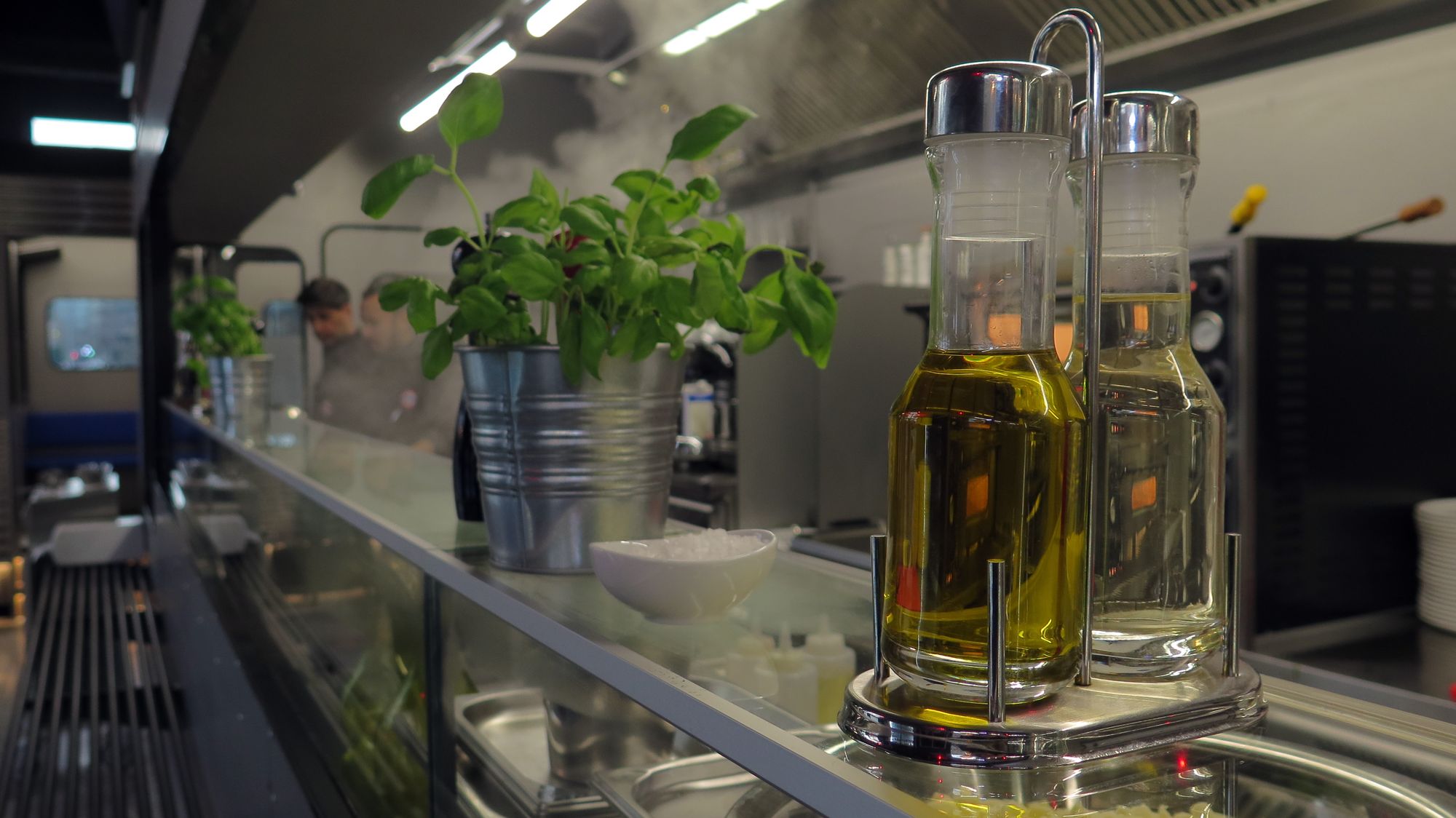 Bedient wird nicht. Dafür gibt es einen hübschen Aufruf, wenn die Speise fertig ist. Der Koch ruft dann durch den Imbiss: Gleis 4. Also – gut aufpassen, wo man sich hinsetzt.