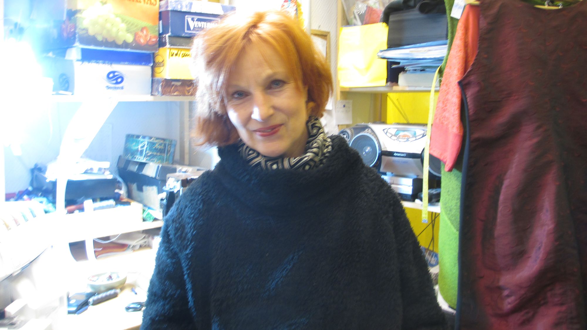 Gundis Vasilev in ihrer Schneiderecke„Das letzte Jahr war hart“, sagt Vasilev. Doch sie hoffe nun, da die Straße fertig ist, auf Besserung. Zu spüren sei allerdings auch die Pegida-Bewegung in der Stadt. „Vor zwei Jahren musste ich deutlich mehr Englisch mit Kunden sprechen. Das ist jetzt nicht mehr so“, sagt Vasilev bedauernd. Ausländische Kunden seien weniger geworden. Während des Studiums in Berlin Weißensee absolvierte Vasilev ein Diplomjahr in Dresden und verliebt sich in die Stadt. „Wenn ich das so sage, meine ich mit Dresden genauer gesagt die Neustadt!“ Bunt, turbulent, kreativ – die bunten Schals flattern wie Fähnchen vor der Ladentür. Aus dem Radio murmelt klassische Musik, den Kaffee gibt es türkisch und schnell hat sich ein Gespräch entsponnen, so abwechslungsreich wie die Textilien überall im Raum.