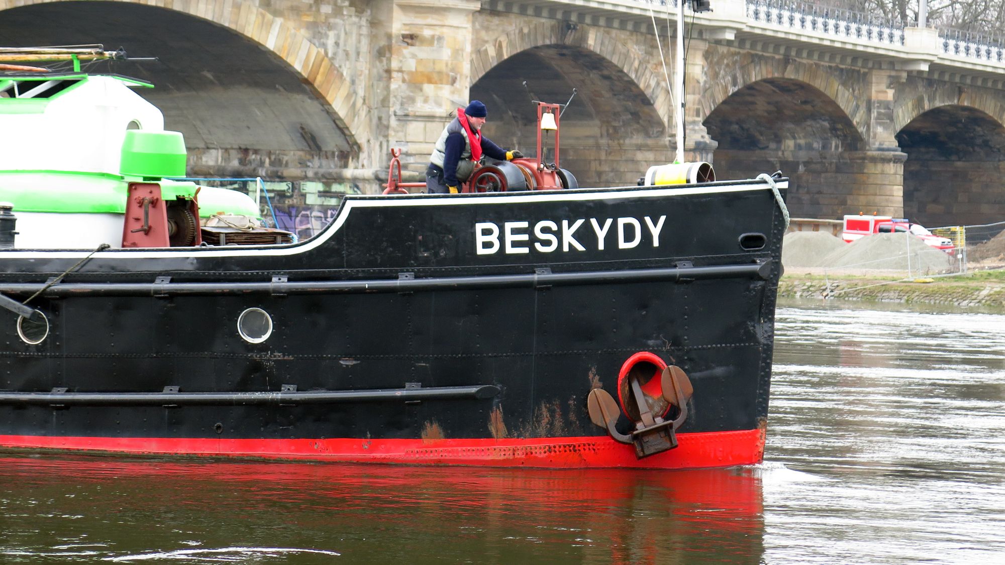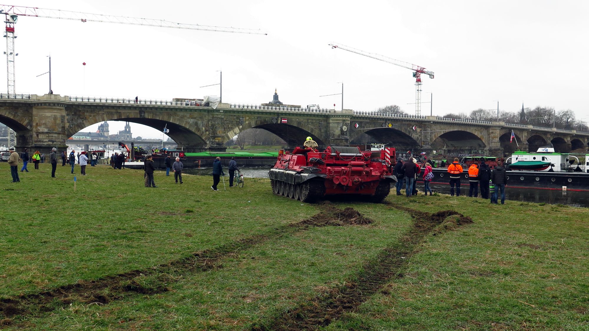 Mal sehen, wie dicht man nachher rankommt. Ich habe gerade auch tschechische Feuerwehrleute mit Kameras gesehen. Es wird sicher reichlich Video-Material geben. Das Spalier oben am Käthe-Kollwitz-Ufer ist schon dicht besetzt.