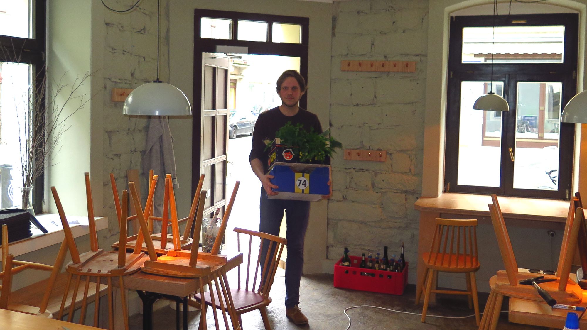 Das alte „Flax“ ist nicht wieder zu erkennen. „Gestrichen werden musste, und der Vermieter hat uns um eine gedeckte Farbe gebeten“, erklärt Andreas das neue Grau an der Außenfassade. Innen gibt es neue Tische und Stühle. Letztere haben sie gebraucht erworben, die Tische wurden aus Sperrholzresten selbst zusammengezimmert. Das Kneipchen wirkt jetzt ein bisschen gemütlicher als zu Flax-Zeiten.