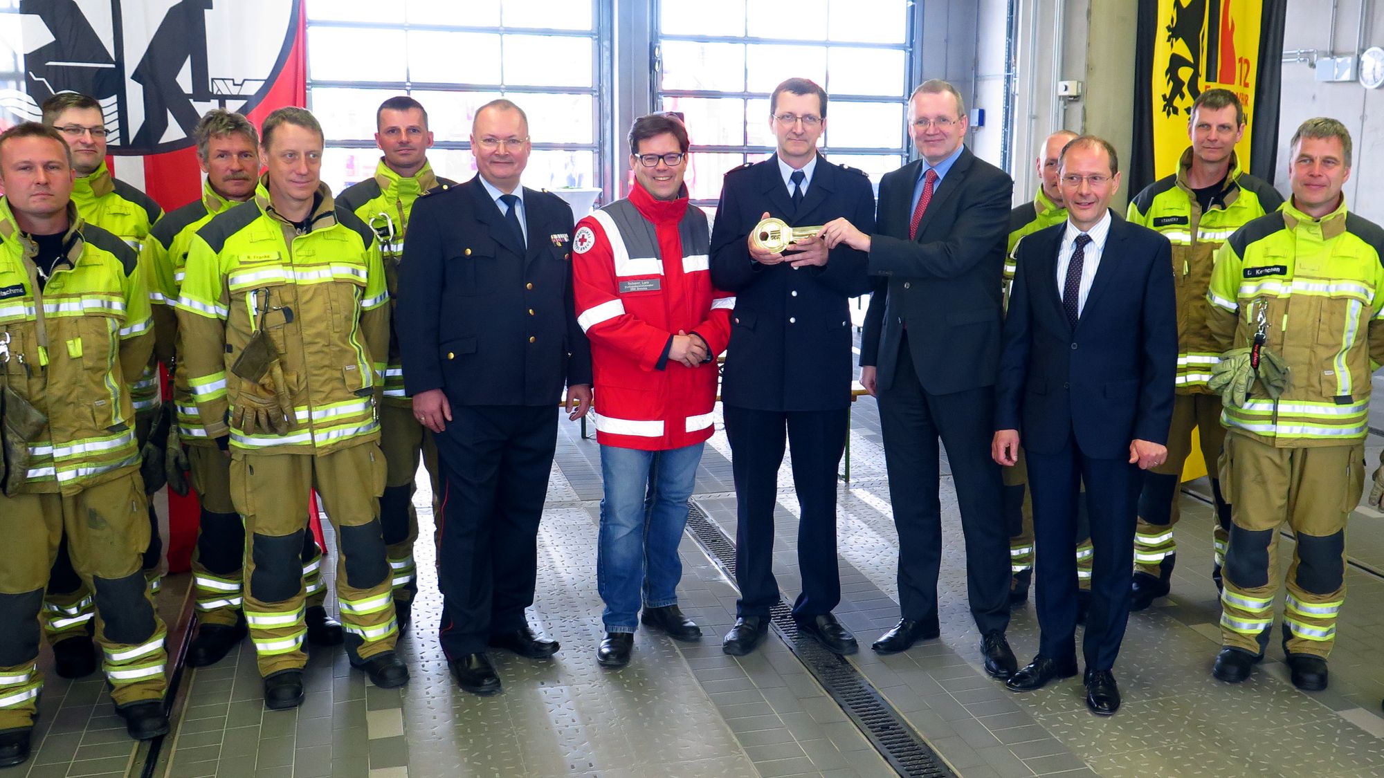 Blasorchester der Feuerwehr DresdenDie Blaskapelle schmettert einen zünftigen Tusch, dann dürfen Innenminister und Ordnungsbürgermeister reden, schließlich wird ein goldener Schlüssel übergeben. Viel Symbolik hier und heute. Kein Wunder, immerhin wurde die Feuer- und Rettungswache für 17,6 Millionen Euro errichtet. Mit ihr soll der Brandschutz im Dresdner Norden noch besser gewährleistet werden. Warten auf den nächsten Einsatz, die Löschzüge.Die 100 Jahre alte Wache in der Neustadt war den Brandhelfern zuletzt doch ganz schön eng geworden. Wie Ralf Schröder, der Pressesprecher der Feuerwehr Dresden erzählt, war vor allem die Ausfahrt aus den Toren immer mit rangieren verbunden. Und die einzig mögliche Ausfahrt auf die Königsbrücker Straße war auch nicht optimal.