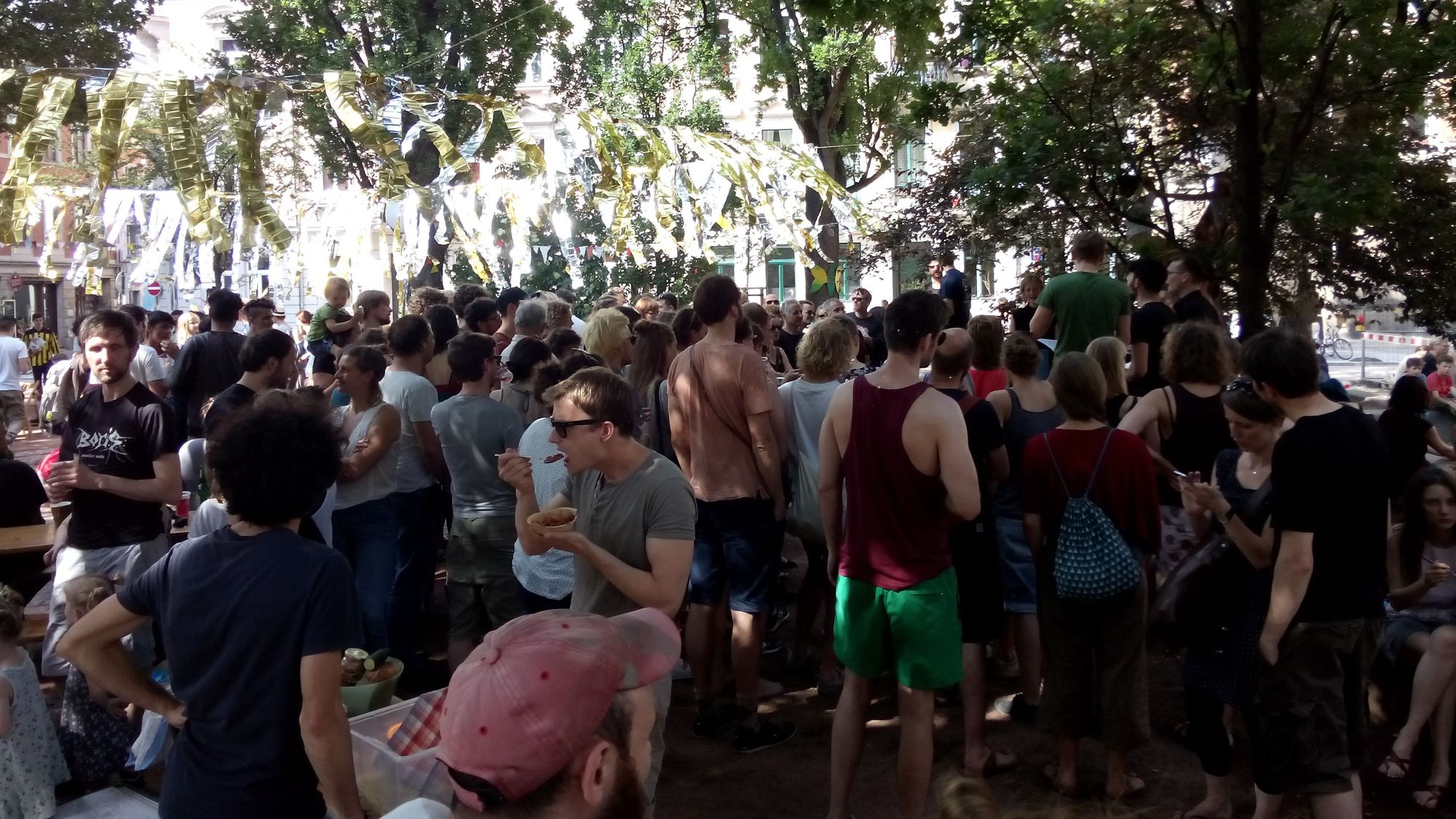 Am Sonntag feierte sich dann der Martin-Luther-Platz, nach dem Anwohnerfrühstück mit Infos zur BRN konnten die Leute gleich dort bleiben und weiterfeiern. Es gab eine kleine Bühne auf der unter anderem der Kneipenchor und Seau Vaulant auftraten.
