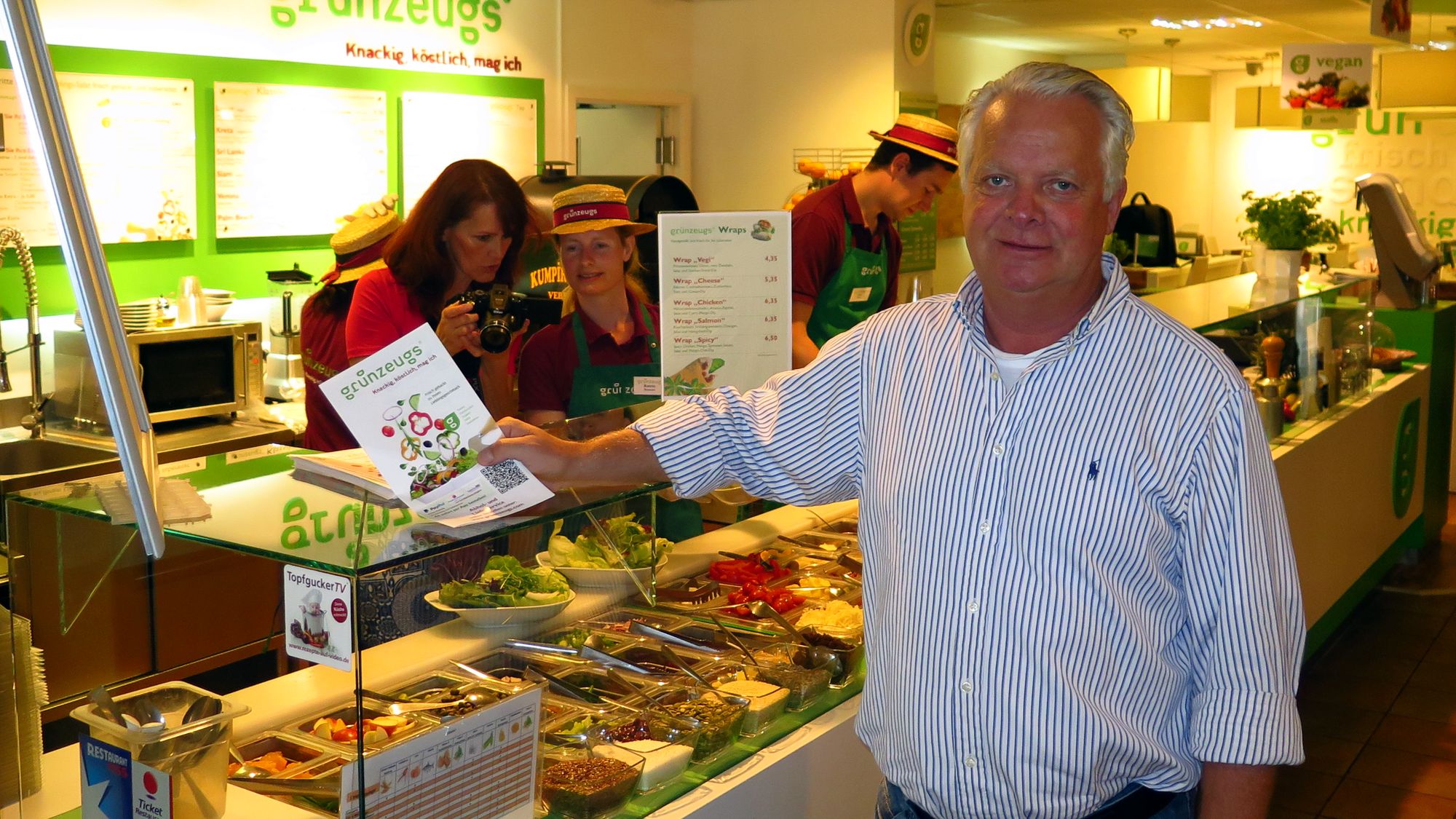 Grünzeugs-Chef Gerhard TrömperTrömper hat scheinbar mit „Grünzeugs“ in Dresden kein Glück. Hier hat er den Grundstein für sein Franchise-Unternehmen gelegt. Inzwischen gibt es die Salat-Bars auch in Erfurt, Potsdam, Leipzig und Graz sowie demnächst in Münster und Klagenfurt, doch in Dresden ist dies nun der zweite Standort, der scheitert. 2014 hatte Trömper im Konsum auf der Alaunstraße eröffnet, im Neustadt-Geflüster-Imbiss-Test konnten die frischen Salate überzeugen. Allerdings waren die Kunden dort offenbar nicht bereit, die Preise für die grünen Salate zu zahlen. Dagegen lief die Filiale auf der Hauptstraße immer gut, bis eben nun die Nachbarmieter einer nach dem anderen ausgezogen sind.