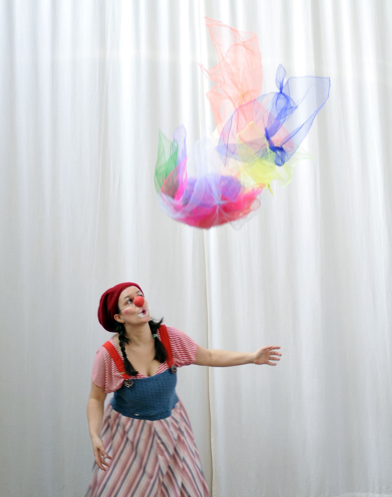 Das ganze Wochenende steht im Zeichen des Clowns – denn „Ciboulette“ spielt auf. „Ciboulette“, das ist Yaëlle Dorison, die Französin ist seit 1999 als Clown unterwegs. Seit neun Jahren arbeitet sie in Dresden unter anderem auch als Zirkus- und Sprachtrainerin. Und immer wieder als Clown, die „Ciboulette“ ist ihre Paraderolle. Während ihres Kunststudiums lernte sie den Zirkus kennen. Die Vielfalt dieser pädagogischen Methode hat sie von Beginn an gefesselt.