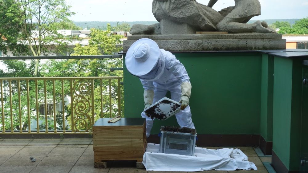 Das Bienenvolk hatte sich auf die Suche nach einem neuen Unterschlupf gemacht. Gefunden hatten die Bienen einen denkbar ungeeigneten Platz auf der Louisenstraße in einem Kindersitz. (Neustadt-Geflüster vom 2. Juni). Die Schwarmretterin Marion Loeper vom Imkerverein Dresden sammelte das summende Völkchen ein. Ursprünglich sollten die Bienen in die Johannstadt ausgesiedelt werden. Dann ergab sich aber die Chance auf eine Unterbringung auf der Neustädter Elbseite.