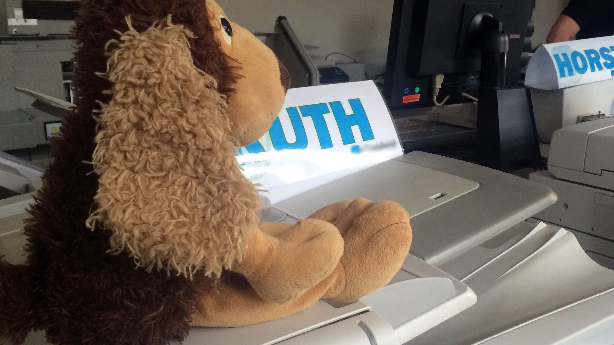 Er erzählt, ne schnöde Grußkarte war ihm zu langweilig. Also hat er das Kuscheltier seiner Liebsten entführt, kopiert und an einigen Stellen im Viertel per Poster plakatiert. Nun hofft er, dass die Liebste es sieht, die Idee gut findet und ihn nicht noch wegen Umweltverschmutzung oder Ähnlichem anzeigt. Wenn der Geburtstag vorbei ist, so verspricht er, will er nochmal los ziehen und die Plakate wieder entfernen.