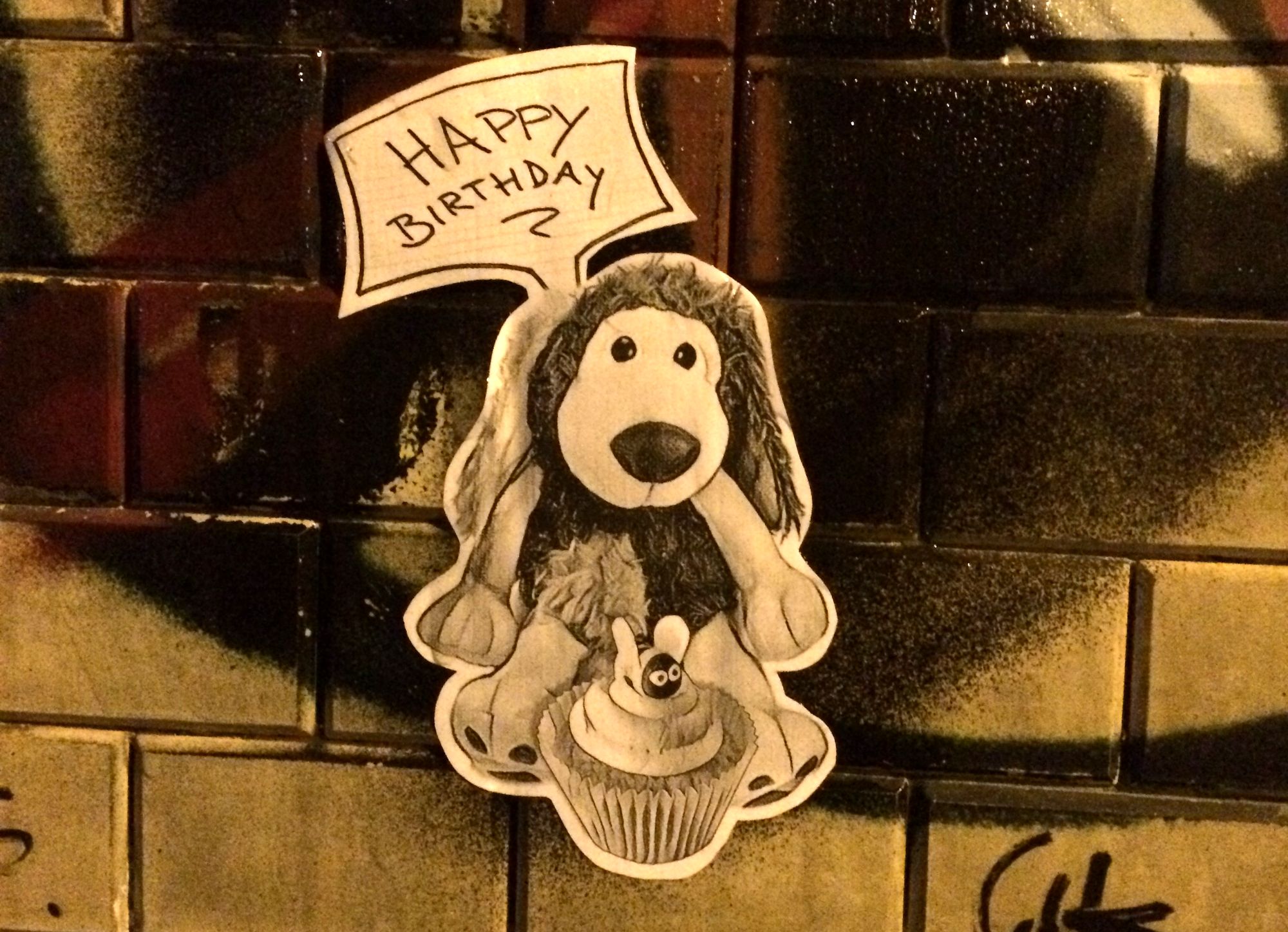 Wäre doch sehr schade, wenn er die Geburtstagsgrüße wieder abmachen würde. Solche Bilder sind immer die Highlights wenn ich mit Kind durch die Stadt ziehe.