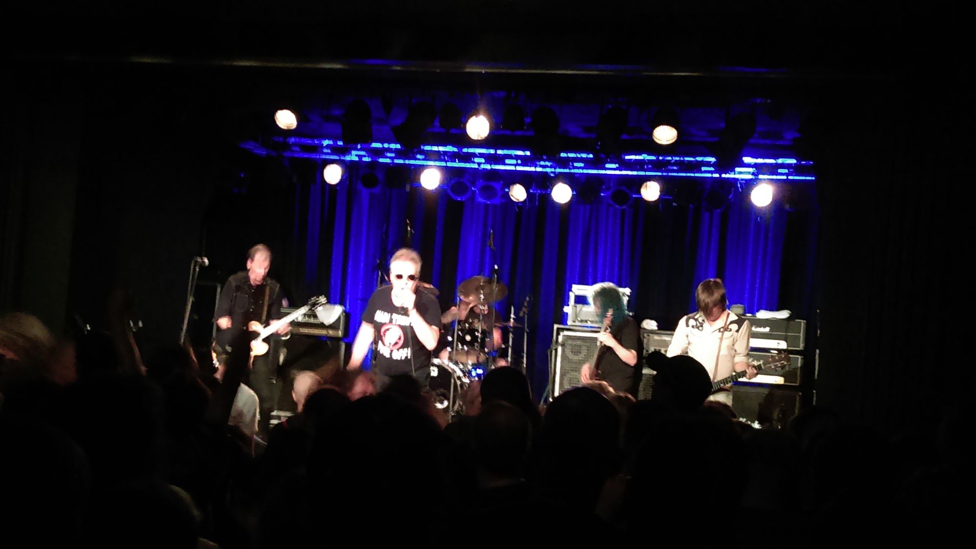Jello Biafra in der Scheune2016 – selber Song, selber Sänger, anderer Text, jetzt heißt es „Nazi-Trumps – Fuck Off“ und der ganze Saal brüllt mit. In der Scheune haben sich ein paar hundert ältere Herren mit Bierbäuchen und kahlen Stellen versammelt und hüpfen begeistert zum Sound von „Jello Biafra and the Guantanamo School of Medicine“ – ein Konzert für Insider. Jello Biafra war einst der Sänger der „Dead Kennedys“ und die wiederum waren Ende der 1970er Jahre eine der ersten amerikanischen Punk-Bands, zumindest die bedeutendste mit politischen Texten.