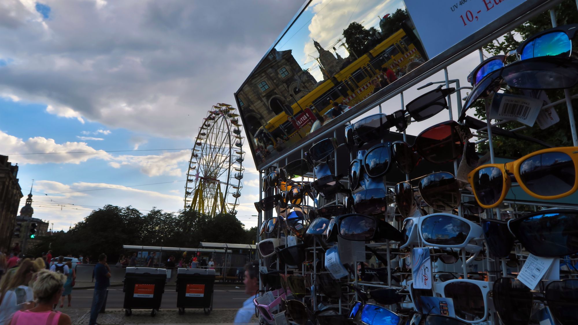 Weiter, am Neustädter Markt klingt es musikalisch. Neben dem Goldenen Reiter steht ne hübsche Bühne, eine jugendliche Band stimmt gerade ihre Instrumente. Dann ein Blick auf die Brücke. Die ist voll. Da rüber? Wer kann das wollen, ich werfe noch einen Blick neben die Brücke, als plötzlich einem riesigen Zeiger gleich ein Metallpendel in die Höhe rast, kreischende Menschen hänge dran. Puh! Rummel-Zeit?