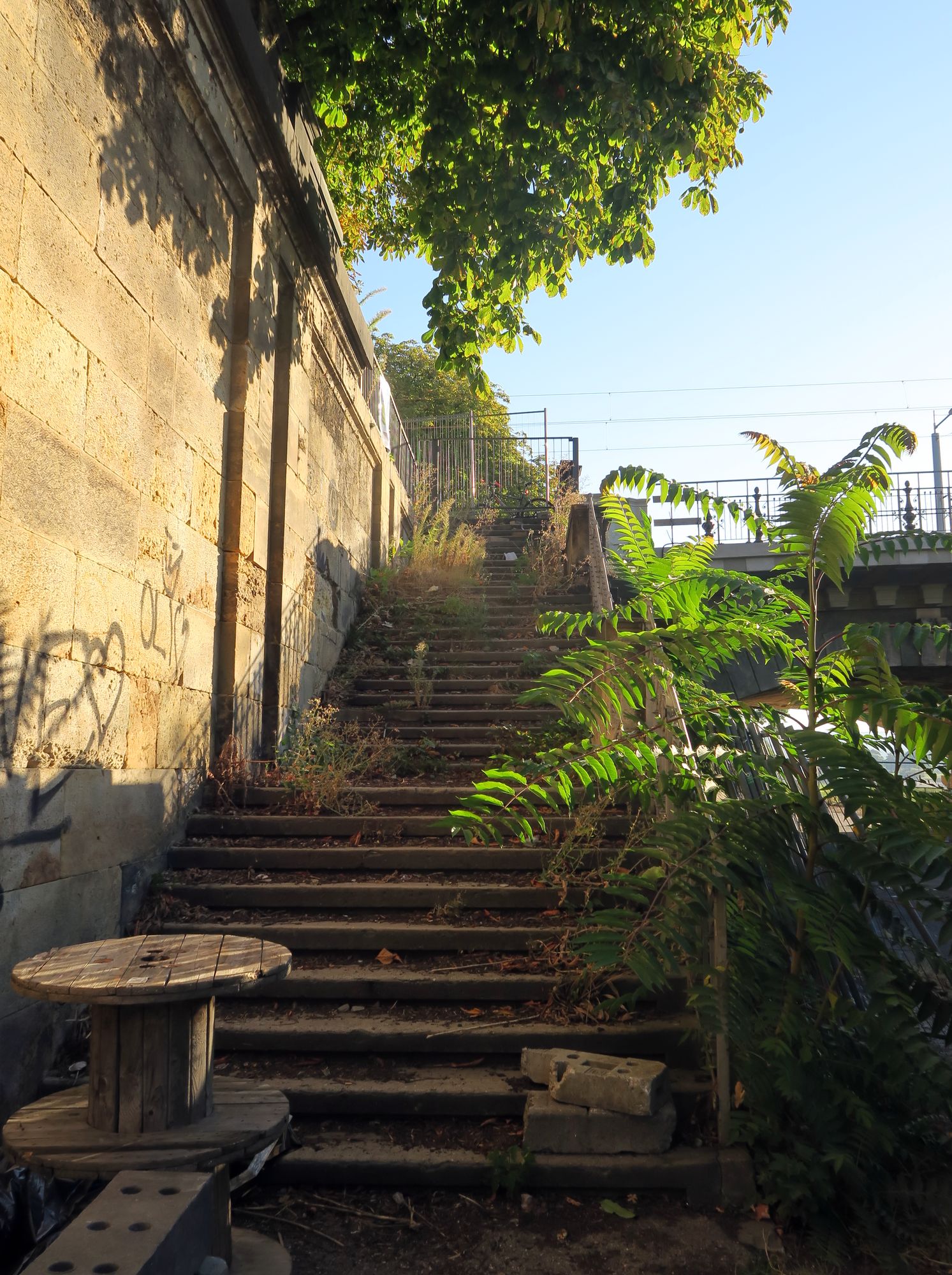 Am Königsufer entsteht jetzt in der Verlängerung von Glacisstraße und Rosa-Luxemburg-Platz ein Brücken-Neubau, das teilte gestern die Stadtverwaltung mit. Er soll die alte Brücke ersetzen. Ursprünglich entstand die Brücke Anfang der 30er Jahre des 20. Jahrhunderts im Rahmen der Neugestaltung der Neustädter Elbeseite. Samt Freitreppe dient sie Fußgängern als Übergang vom Rosa-Luxemburg-Platz zum Staudengarten. Die Brücke überspannt den Weg vom Rosa-Luxemburg-Platz zum Elberadweg. Unter dem Brückenbogen prangte passend zu seiner Entstehungszeit ein riesiges Hakenkreuz, dass zu DDR-Zeiten nur schlecht überputzt und daher noch zu erkennen war.