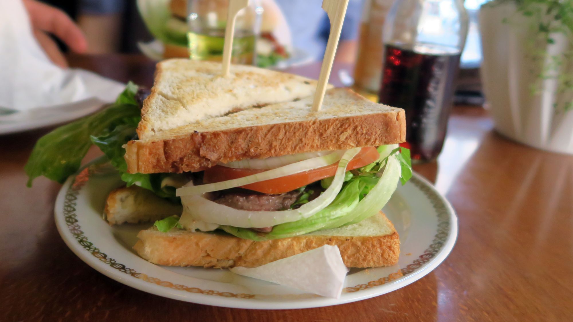 Nun aber zu meinem Sandwich. Der Toast ist gut gebräunt, dazwischen Salat, Zwiebel, Tomate und ein saftiges Steak. Ein Biss, der Toast kracht, das Steak zergeht zwischen den Zähnen. Lecker. In wenigen Minuten habe ich die Portion verdrückt, der Appetit ruft nach mehr. Doch die Vernunft weiß, noch ein paar Minuten und ich bin satt, jedes weitere Gramm würde nur auf den Hüften hängen bleiben. Also: Serviette greifen, zahlen und ab.